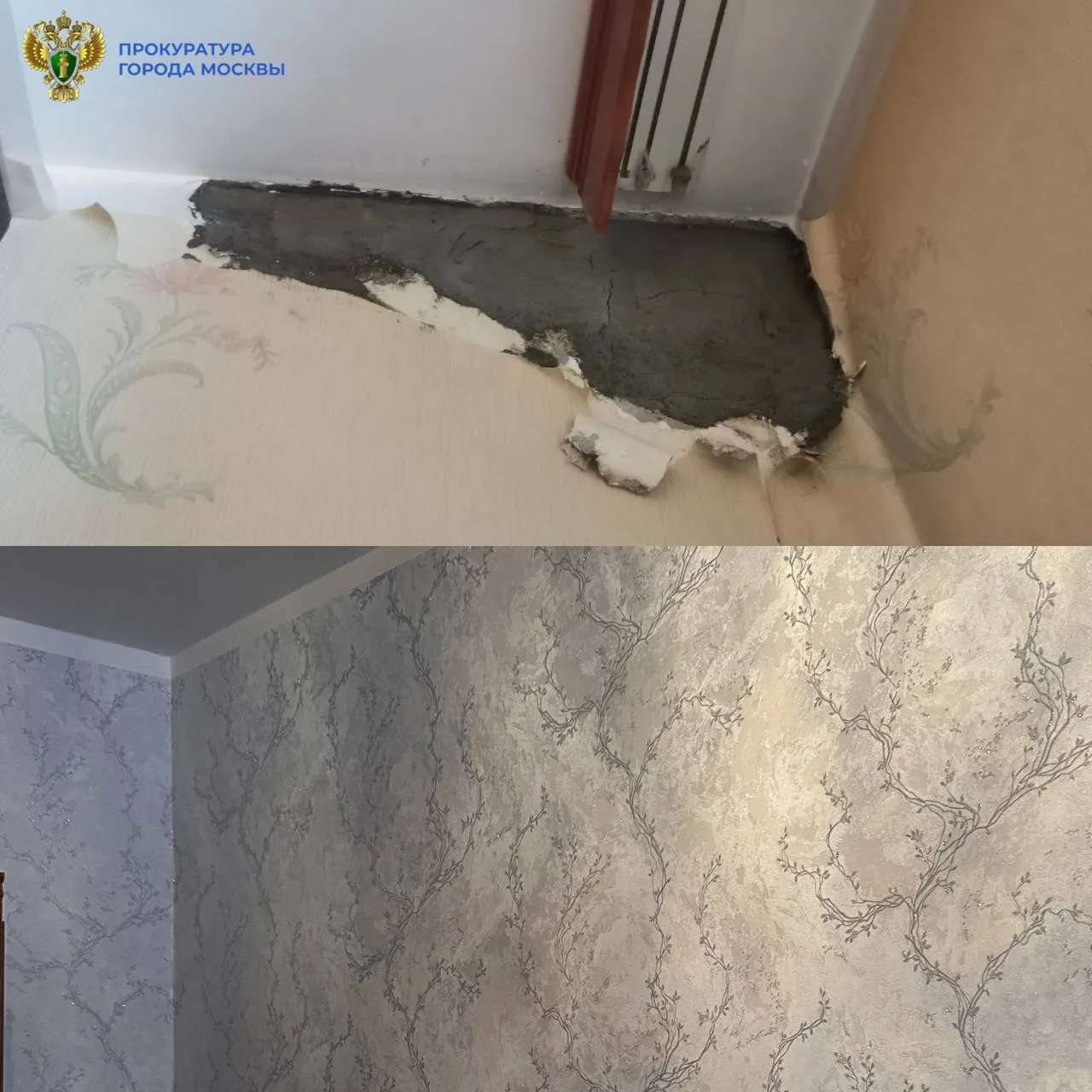 После вмешательства прокуратуры управляющая компания организовала ремонтные работы по восстановлению целостности штукатурного слоя стены, а также теплоизоляции квартиры.