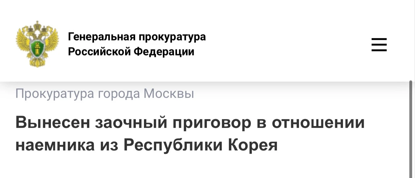 Московский городской суд вынес заочный приговор в отношении гражданина Республики Корея Гына Ли. Он признан виновным по ч. 3 ст. 359 УК РФ (участие наемника в вооруженном конфликте или военных действиях).