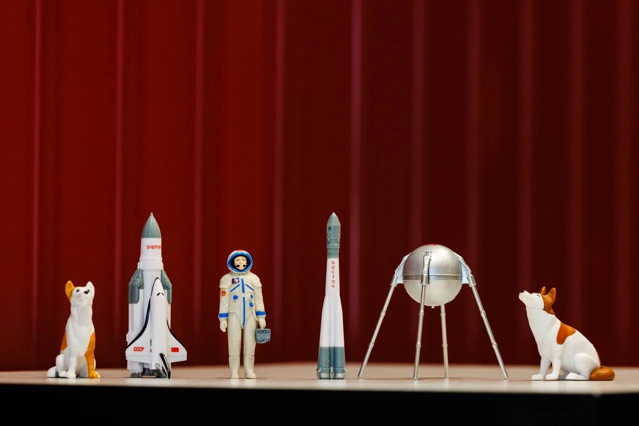 Всего будет 6 фигурок: Белка и Стрелка, космическая система «Энергия-Буран», ракета-носитель «Восток», космонавт в скафандре «Сокол-К» и первый искусственный спутник Земли