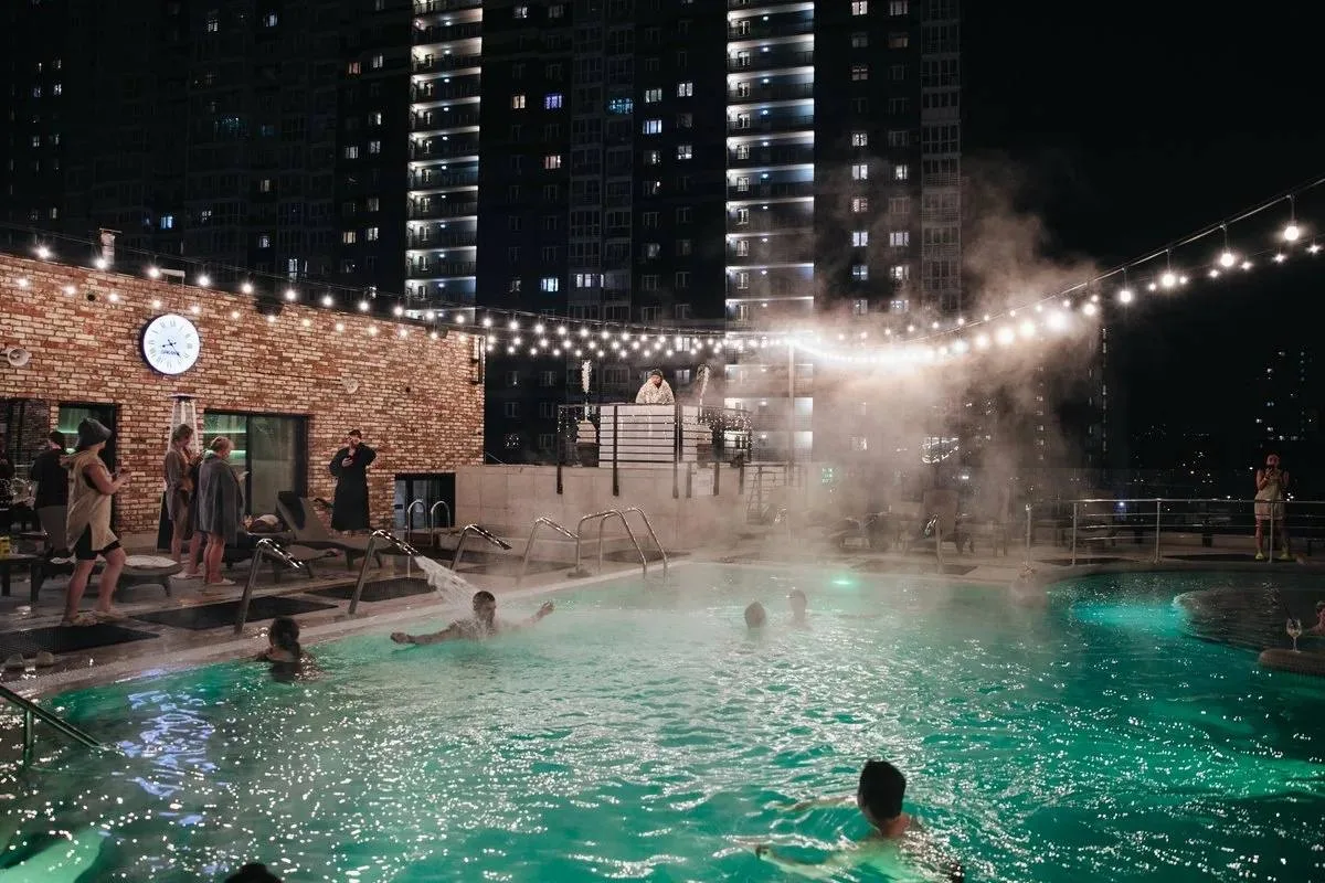 Вы отправитесь в самый модный спа-курорт с огромным теплым бассейном на крыше, 6-ю джакузи, купелями и бассейнами. Где сможете устроить себе настоящую перезагрузку – сходить на массаж или записаться на индивидуальное парение с дубовыми и пихтовыми вениками