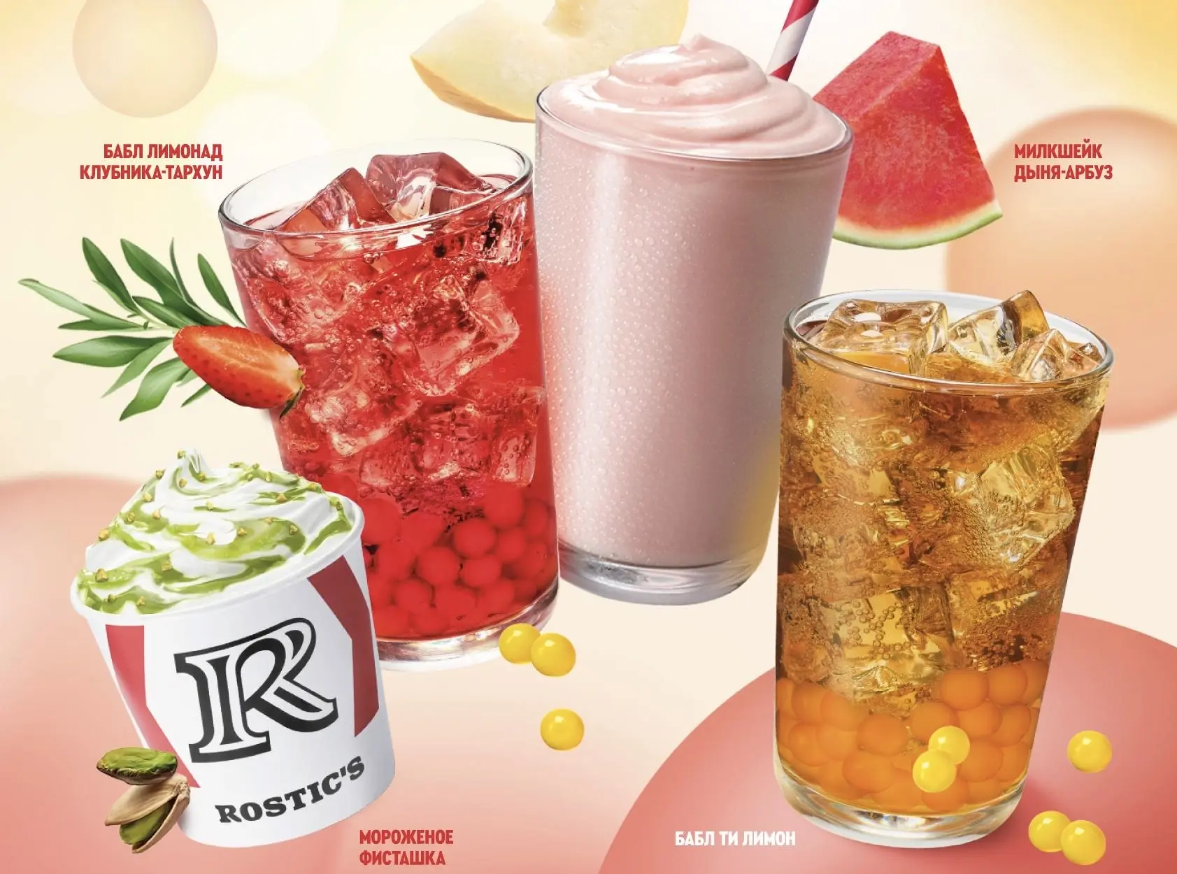 🥛В Ростикс появятся бабл-лимонады, айс-кофе с халвой, мороженое с фисташкой, милкшейки со вкусами арбуза и дыни