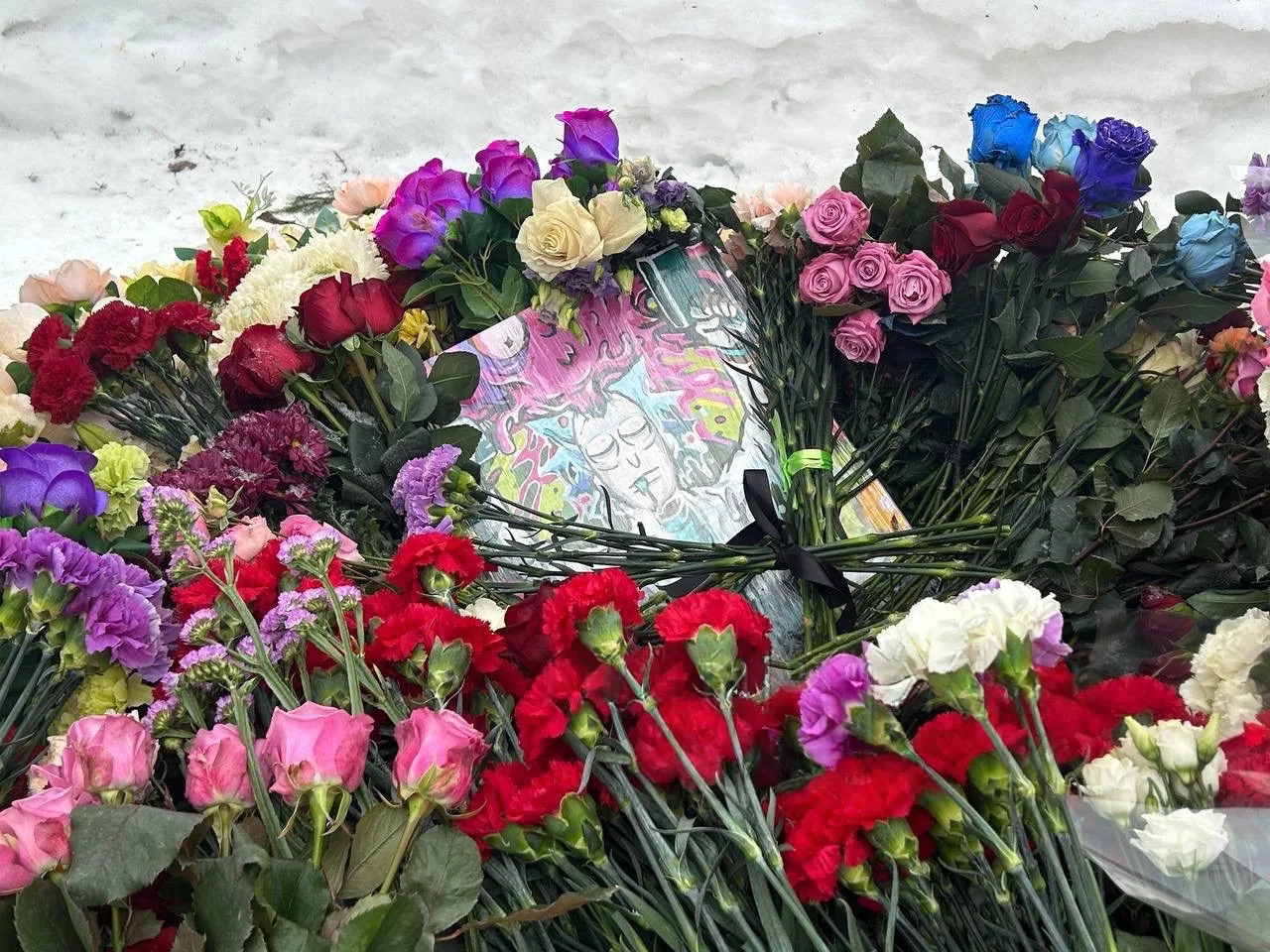Москвичи несут цветы к могиле Навального во вторую годовщину смерти