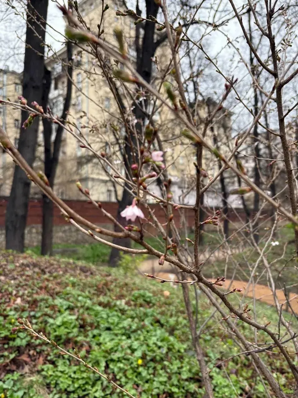 В этот дождливый и пасмурный день РАСЦВЕЛИ первые цветки САКУРЫ в Аптекарском огороде!