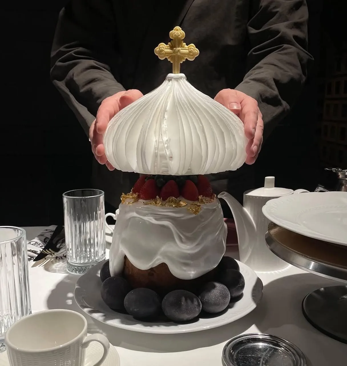 Сам ресторатор признался, что теперь стоимость его творения стала далеко не православной. А ведь ещё в начале апреля кулич от-кутюр весом 1,9 килограмма стоил 20 тысяч.
