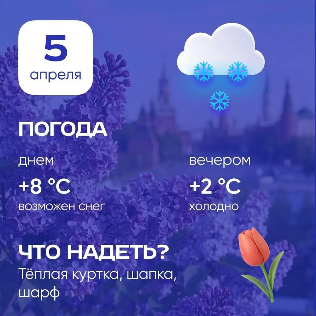 Сегодня в Москве воздух прогрелся до +17°C, а в ночь на 3 апреля в Подмосковье ударят заморозки до -4. В субботу вполне возможен мокрый снег.