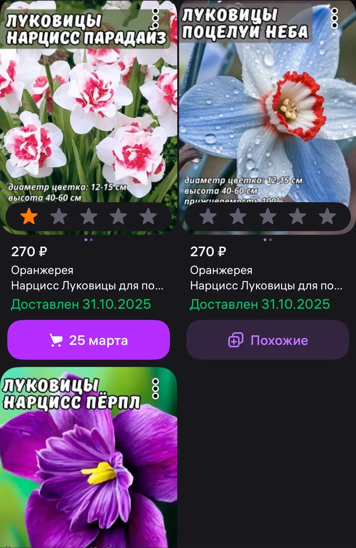 Нормальных отзывов, конечно, на эти растения не было. Отзывы есть, но только на луковицы, все рассказывают, какие чистые, целые и качественные луковицы им пришли. Никто не дождался весны, чтобы написать, что действительно выросло. А я дождалась и опубликую свой отзыв на каждый заказанный нарцисс. Вот только поможет ли это кому-то…