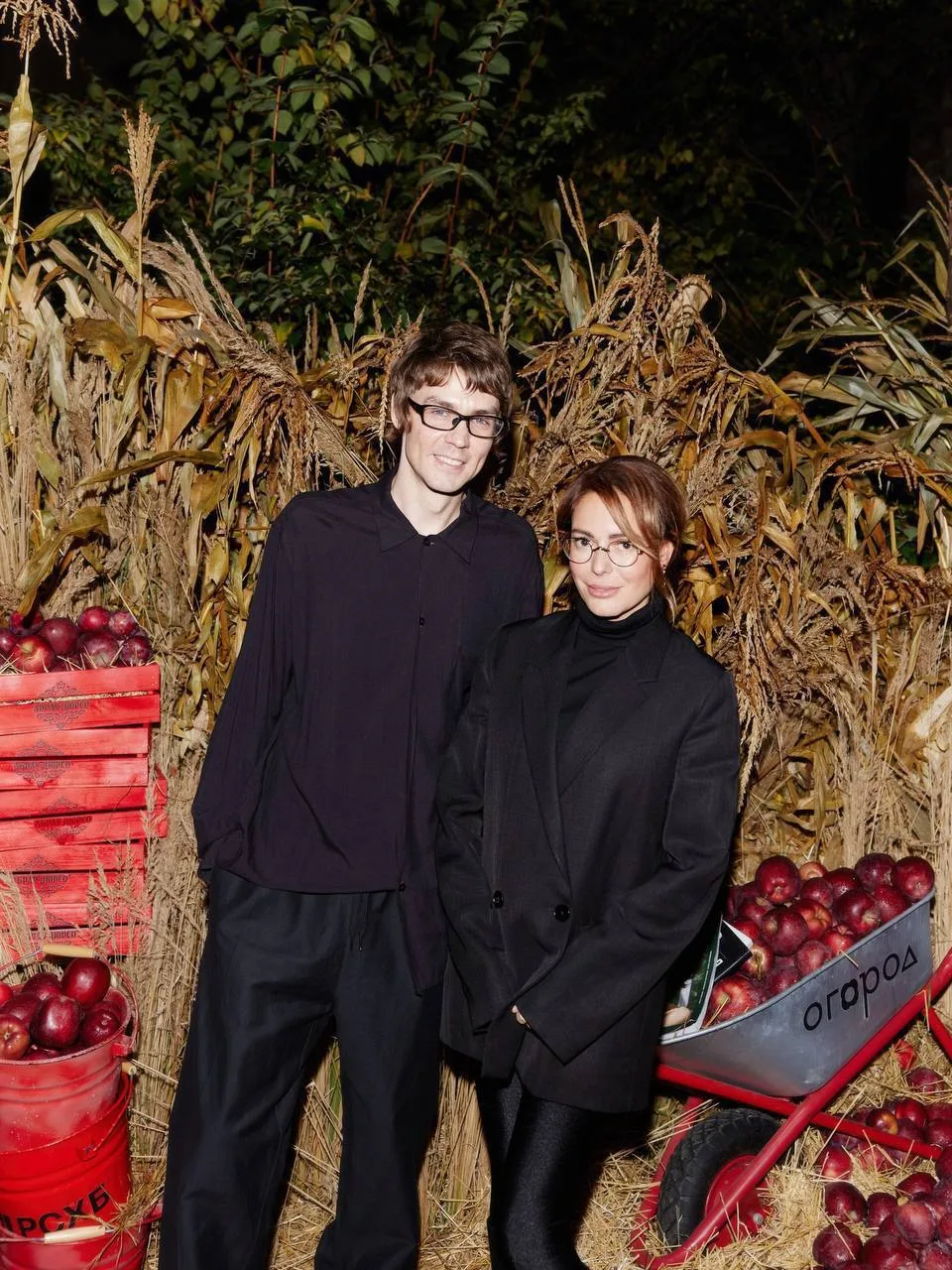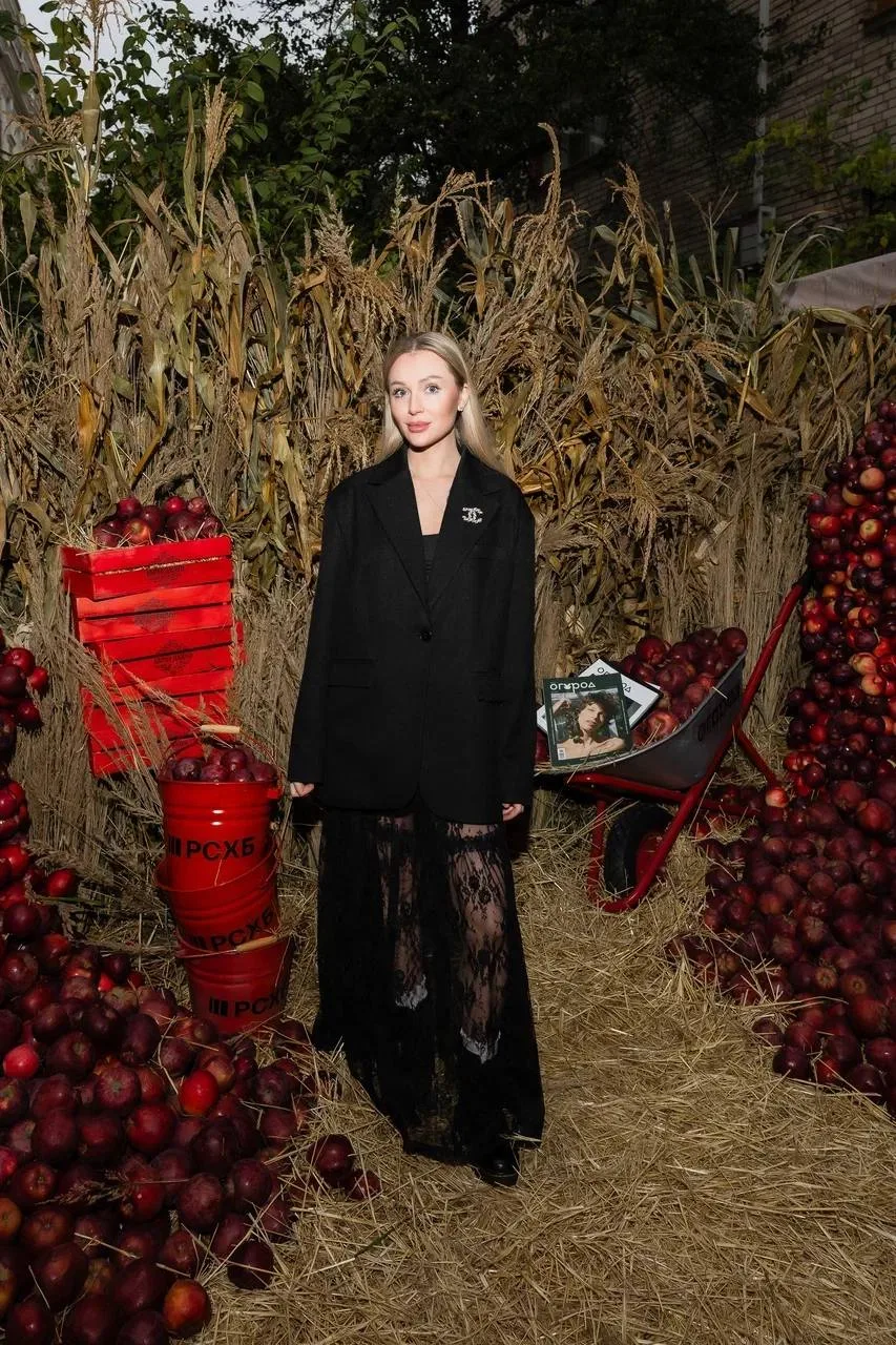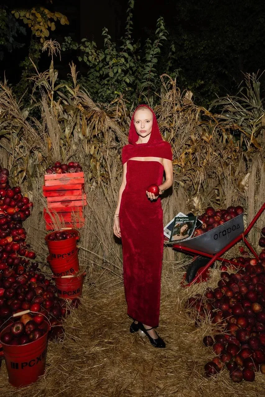 Закуски на афтепати вторят агрокультурной теме, как и фотозона с обилием овощей, яблок и злаков. Гостям подают холодец, борщ с салом, оливье, винегрет, бефстроганов и прочая классика. А на десерт — трубочки со сгущёнкой. Что еще нужно к середине октября!