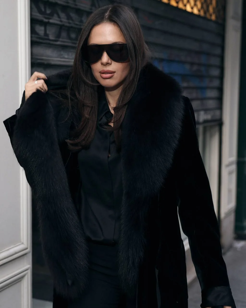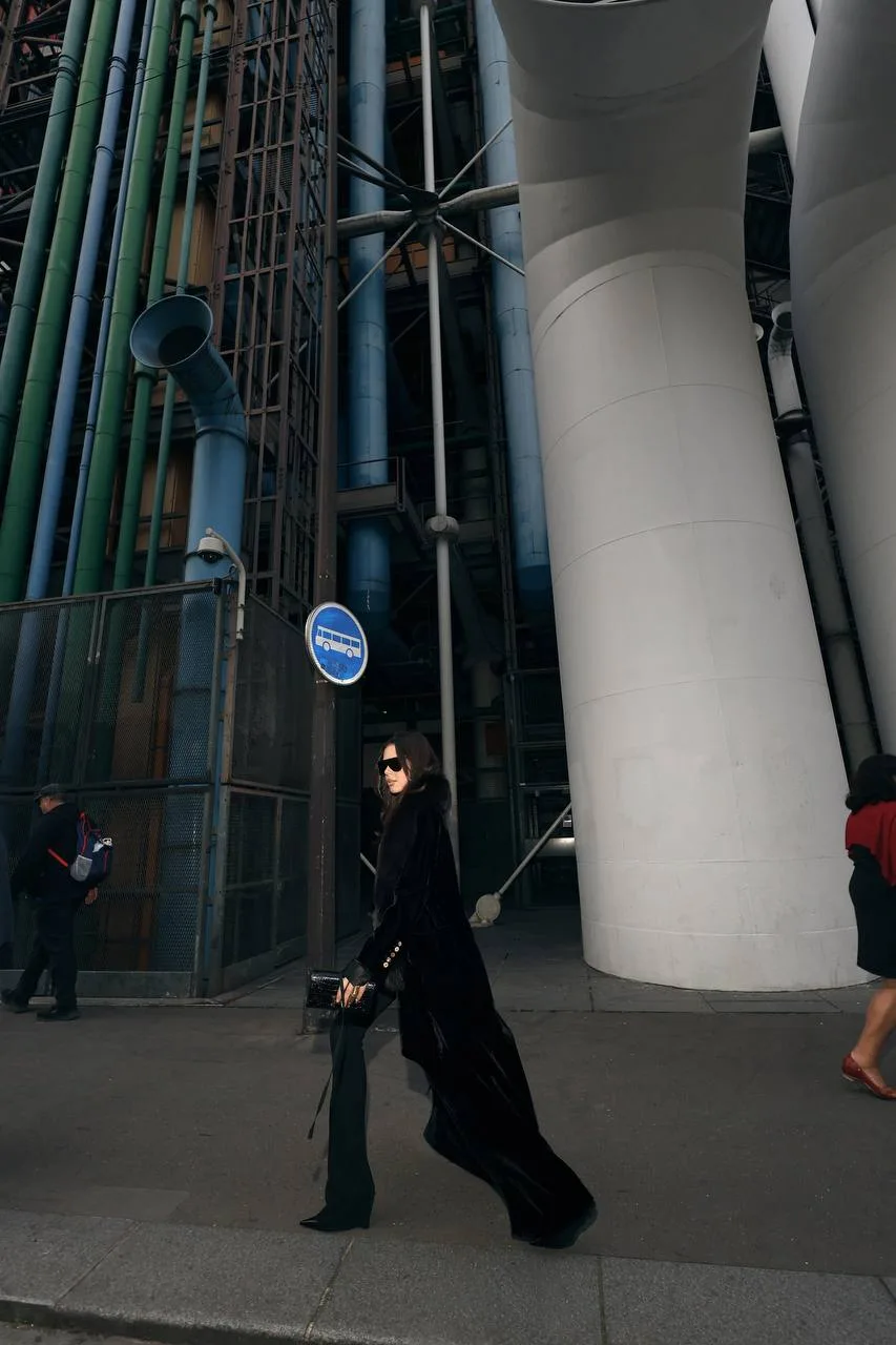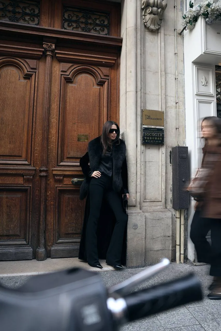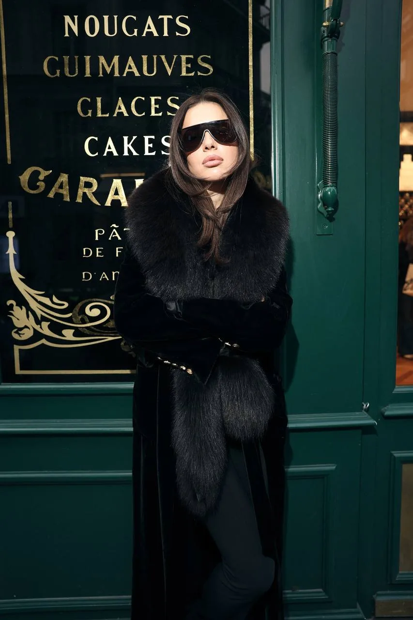 «Schiaparelli — это один из тех показов, где гости всегда выглядят максимально роскошно, и удивить луком непросто, даже если прийти в последней коллекции. Поэтому я решила выбрать что-то особенное, из архивов. У меня было длинное бархатное пальто, купленное несколько сезонов назад, и я надела его вместе с мехом от винтажного жакета Dior. Получился русский вайб: длинное пальто с мехом, очень женственные обтягивающие брюки Tom Ford, шёлковая рубашка и очки. Я немного устала от оверсайза и сейчас больше тяготею к женственности и силуэту в облипку. В целом образ получился строгим, выдержанным, с характером, без излишней золотой фурнитуры, которой у Schiaparelli сейчас много».