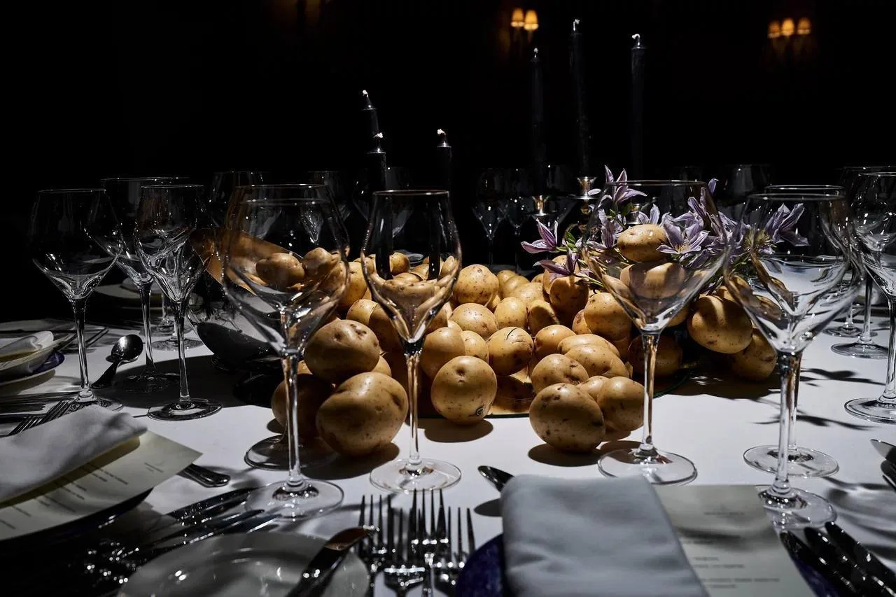 Теме российского сельского хозяйства соответствовали и закуски: классический борщ, маринованные белые грибы, холодец, оливье, бефстроганов и пельмени. А на десерт — трубочки со сгущёнкой, как из детства.