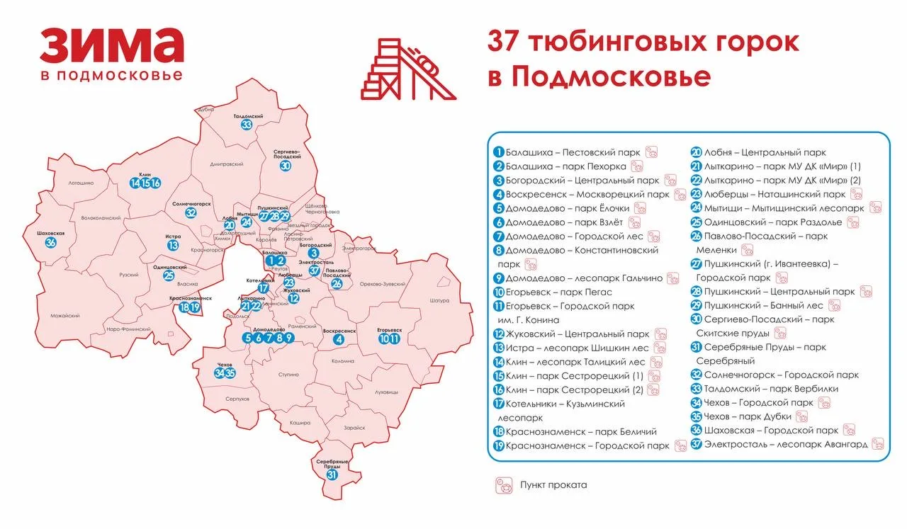 ❄️Список тюбинговых горок и лыжных трасс Подмосковья.