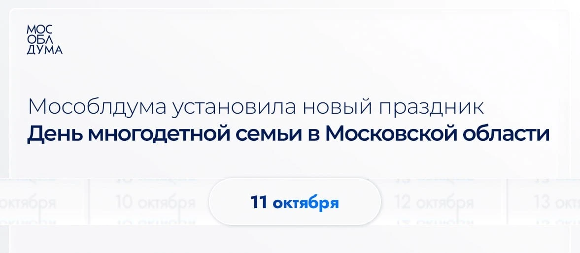С Днем многодетной семьи! Спасибо вам, родители, за любовь, терпение и огромное сердце. Вы делаете Подмосковье сильнее, добрее и теплее. Пусть каждый день приносит радость, здоровье, поддержку и уверенность в завтрашнем дне.