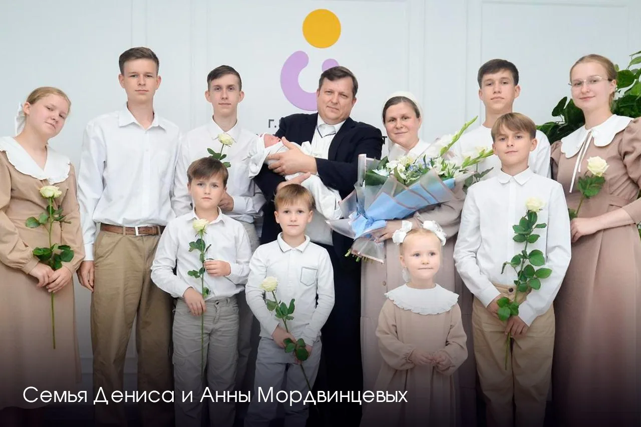 🌼В Раменском в девятый раз стали родителями Анна и Денис Мордвинцевы. У новорожденного Андрея шесть братьев и три сестры. Анна — преподаватель ИЗО, старшие дети окончили музыкальную школу, младшие занимаются спортом, а Денис — работает в сфере IT. Семья Мордвинцевых награждена орденом «Родительская слава» и «Знаком отличия материнской славы».
