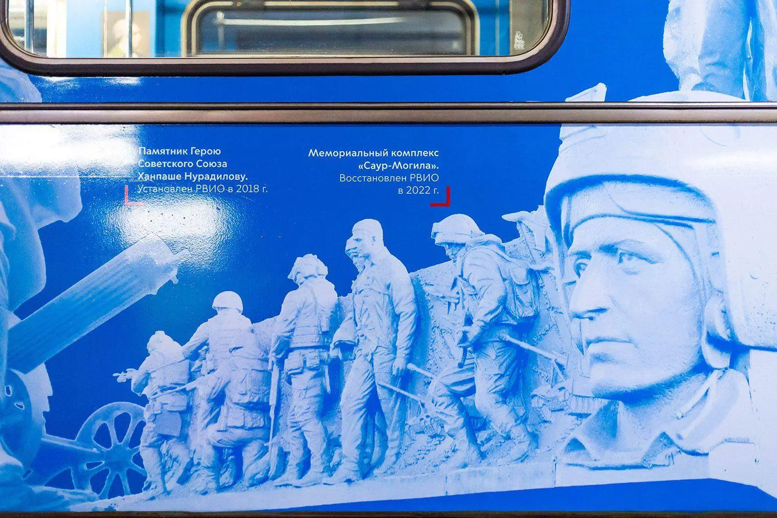 В вагонах представлены справки о ключевых событиях страны, портреты политиков прошлого, деятелей культуры и науки. Поезд будет курсировать на линии в течение шести месяцев.