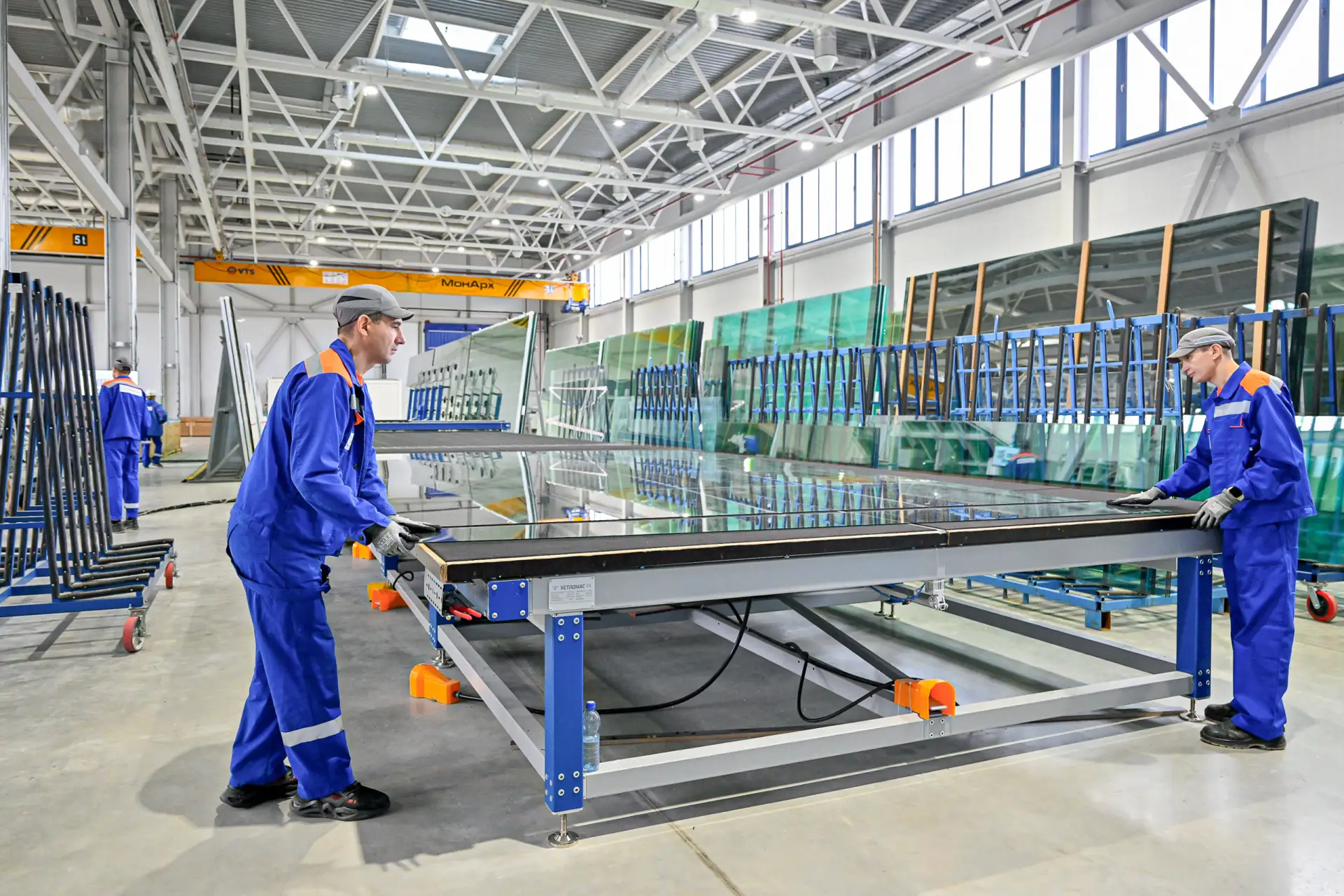 Первая очередь предприятия была введена в эксплуатацию чуть более двух лет назад. Сейчас завершили строительство объектов второй и третьей очереди. Помимо основного завода запустили производство оконных и фасадных конструкций, где планируют выпускать до 270 тыс. кв. м стеклопакетов в год.