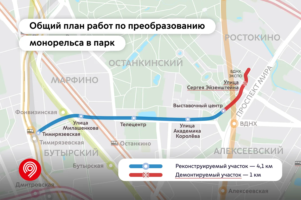 ✅ Пять из шести станций сохраним и трансформируем в двухэтажные павильоны. Также в парке можно будет увидеть два состава монорельса.