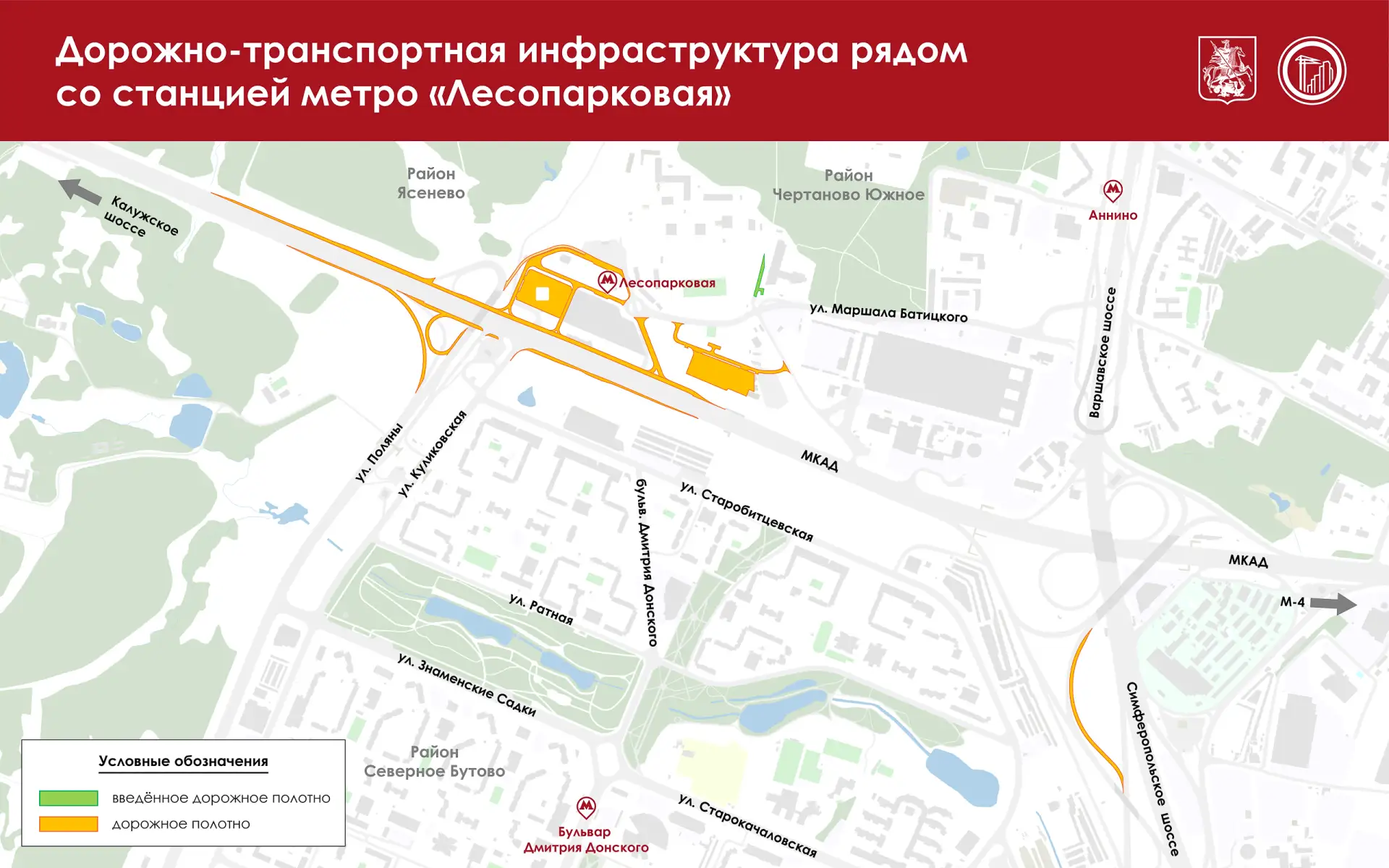Около станции "Лесопарковая" Бутовской линии метро запланированы работы по улучшению транспортной инфраструктуры
