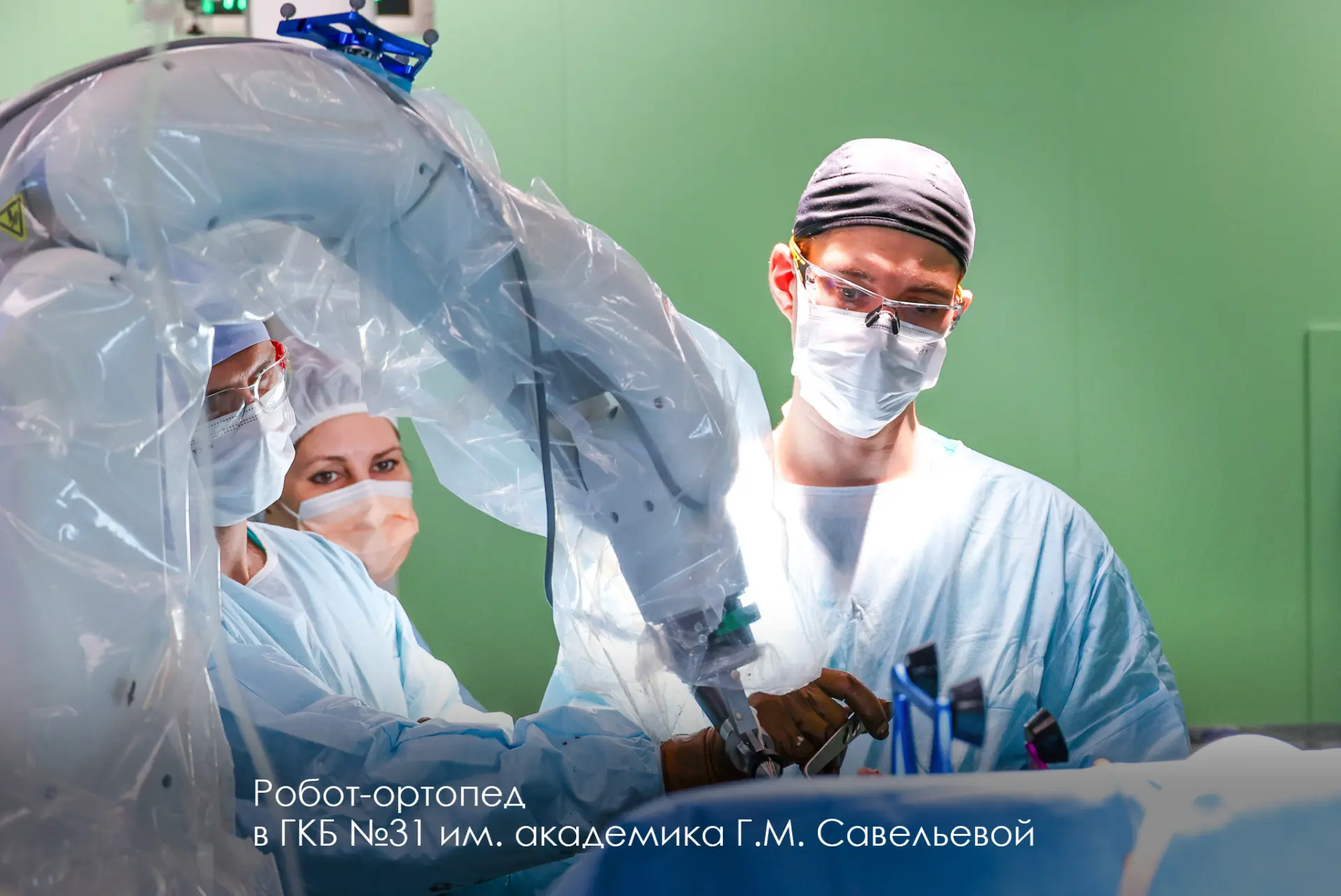 К примеру, хирурги больниц №31 им. академика Г.М. Савельевой, им. В.П. Демихова и им. С.С. Юдина делают с помощью роботов эндопротезирование коленного сустава.