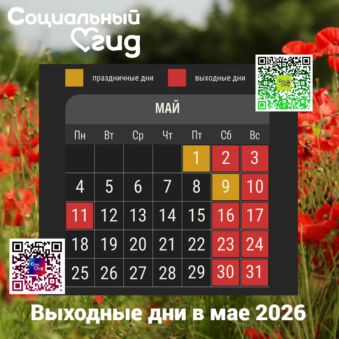 9 мая в 2026 году – это суббота. По правилам ч. 2 ст. 112 ТК РФ праздничный день, выпадающий на выходной, переносится на ближайший рабочий день, в данном случае – на понедельник 11 мая. Поэтому на 9 мая будет также три выходных дня подряд: 9, 10 и 11 мая.
