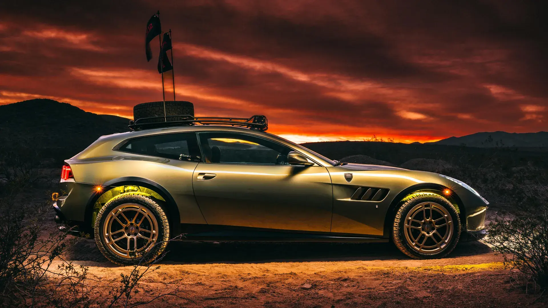 Чтобы покорить пустыню, машину серьёзно переделали: увеличили колею и клиренс, поставили 35-дюймовые шины, а в багажнике теперь лежат три запаски и огромный 550-литровый бак для топлива.