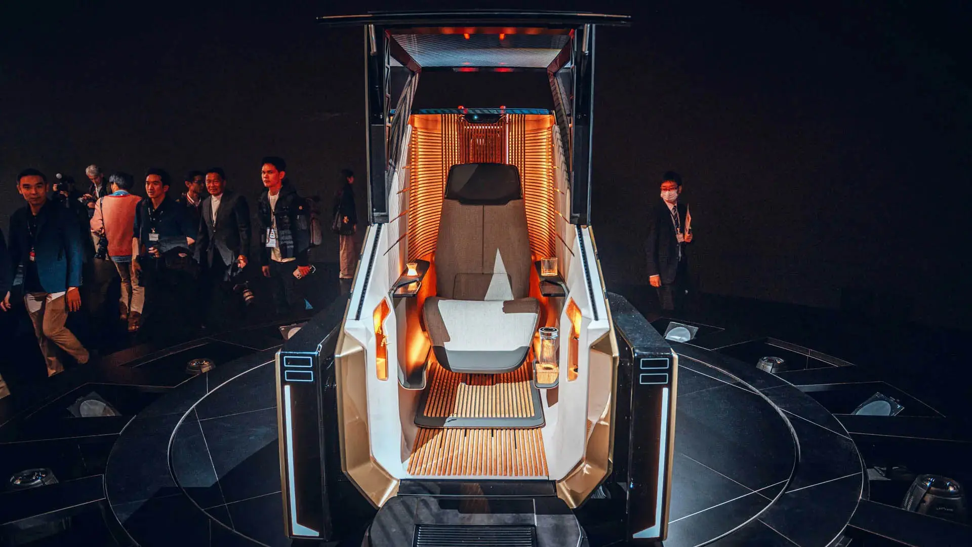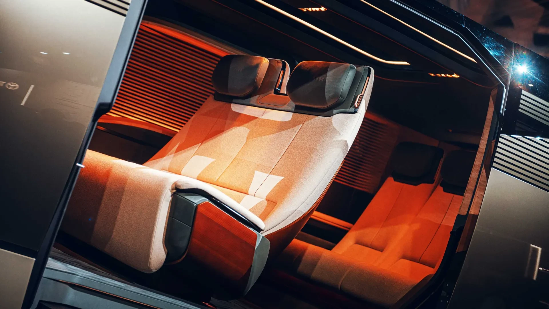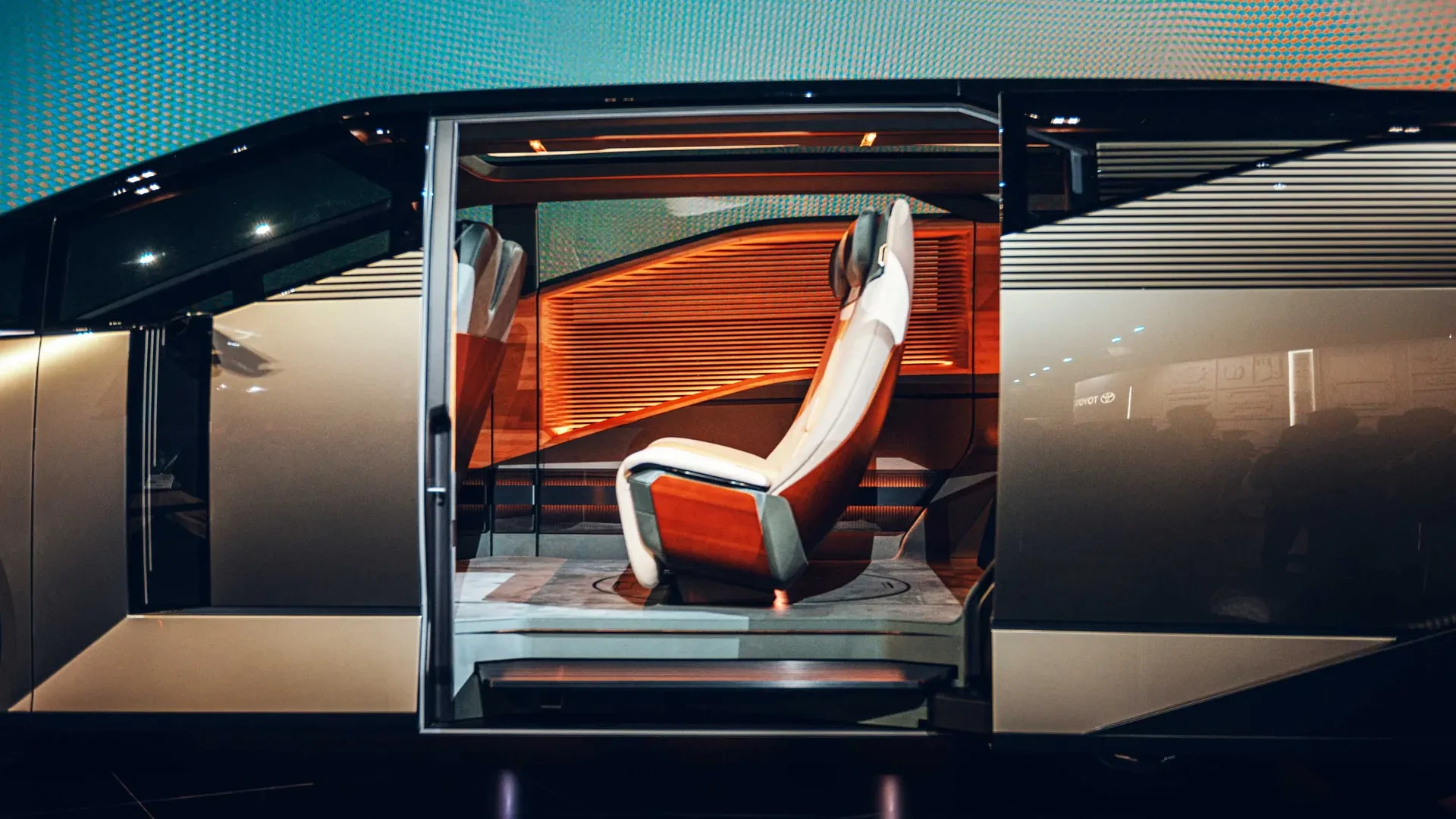 Салон — это настоящий лаунж на колесах. Бамбуковые перегородки, умная подсветка и огромная дверь, как у самолета. Места столько, что можно устроить полноценный офис или зону отдыха.