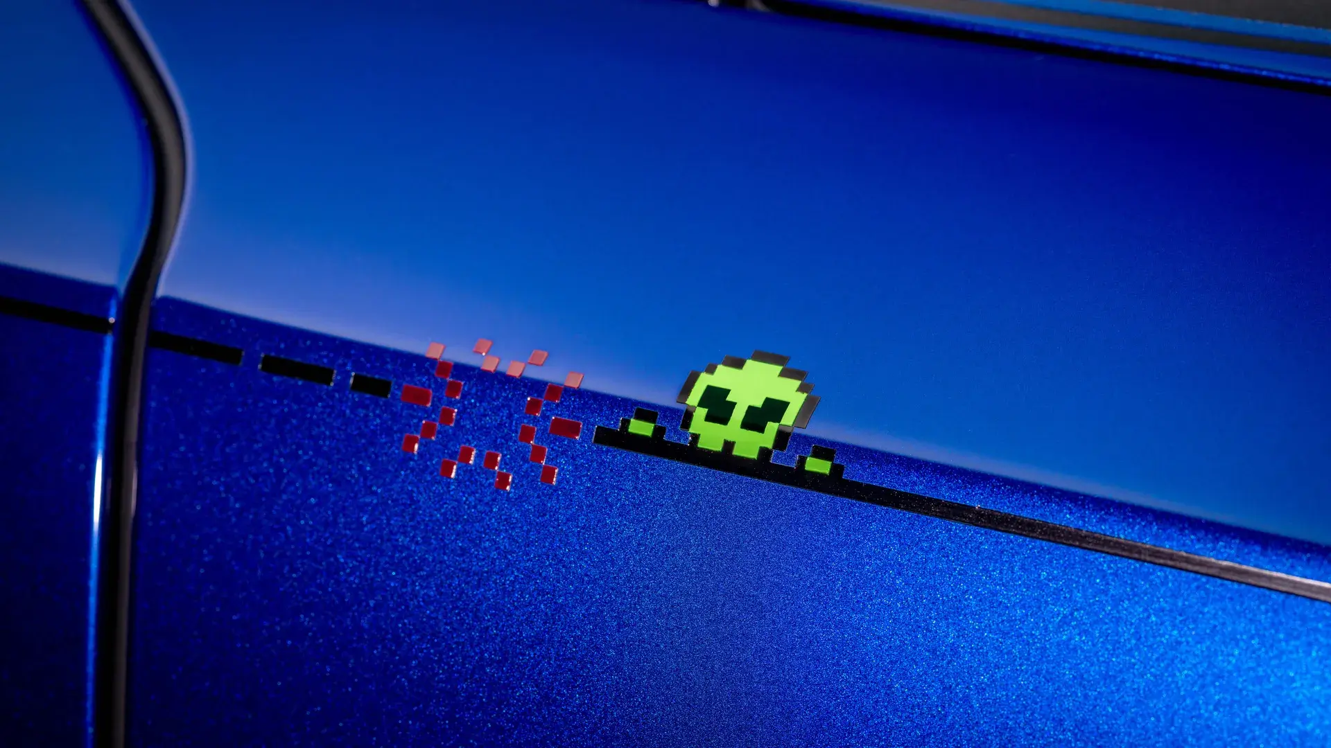 В салоне — море уникальных деталей: рукописный девиз "Каждый день — это новое начало" на порогах, нарисованный от руки кролик (талисман дизайнера) на ковриках, тканевая вставка в фирменных цветах Смита на руле и даже его подпись в нескольких местах.