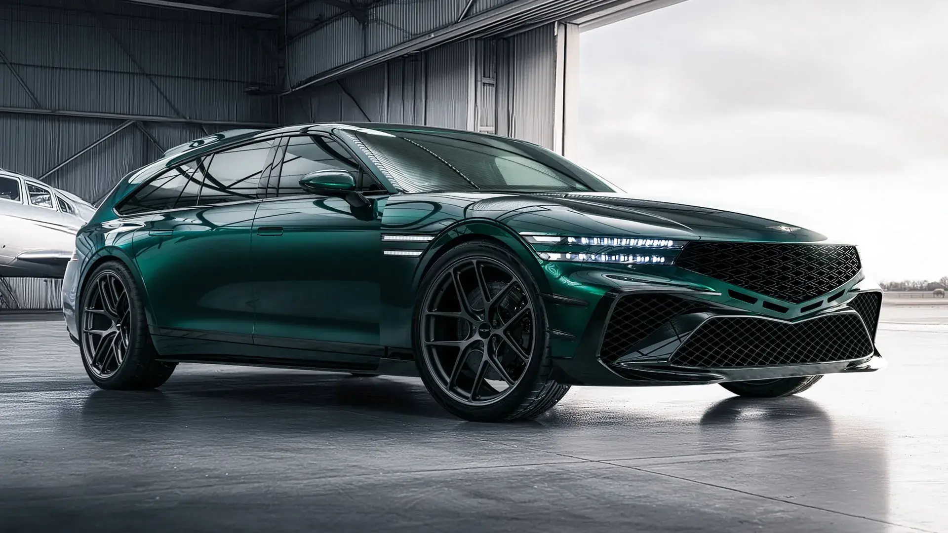 Идеальный кандидат — вот этот зелёный лифтбэк. Под капотом — 3.5-литровый V6 от флагманского седана G90 (до 410 л.с.), 22-дюймовые диски, два спойлера и шикарный салон с отделкой «Chamude».