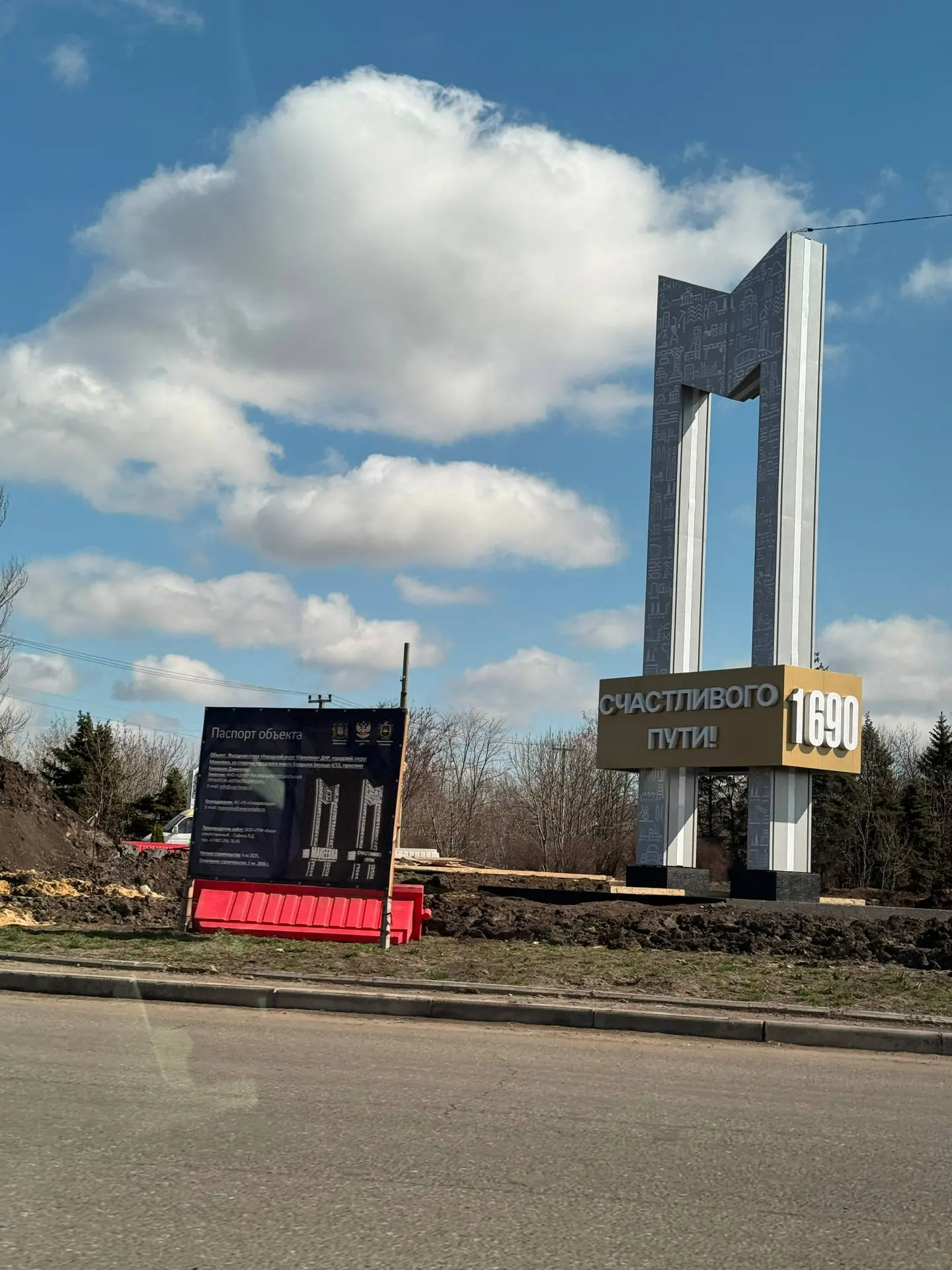 А так сегодня выглядит новая 11-метровая стела на въезде в город