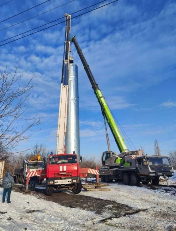 В городе уже установили 12 водонапорных башен, 10 из них работают. Там, где позволяют условия, бурят скважины — 4 уже дают воду, и башни могут работать автономно.