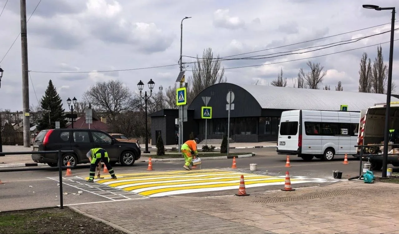 🛠 Обновляют разметку пешеходного перехода на остановке «Танк» на Зеленом.