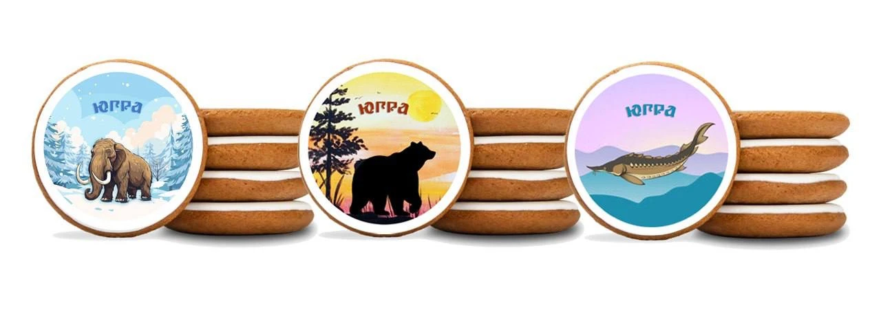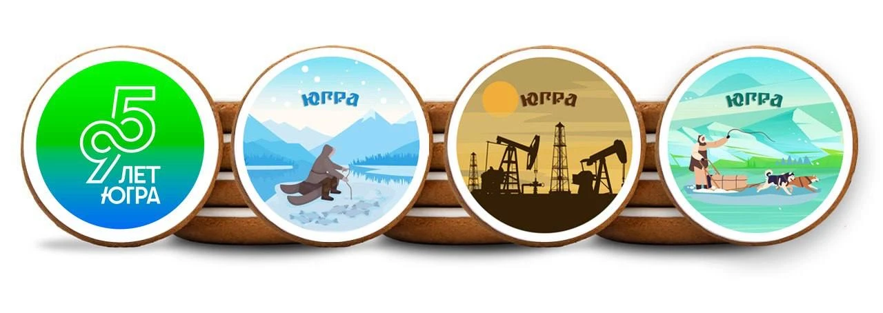 Здесь и мамонт как символ столицы края Ханты-Мансийска, и бурый медведь, и северный олень, и лось, и сибирский осетр. Не забыли, что Югра – ключевой нефтедобывающий регион страны, а также изобразили и традиционную упряжку с хаски, и рыбную ловлю.