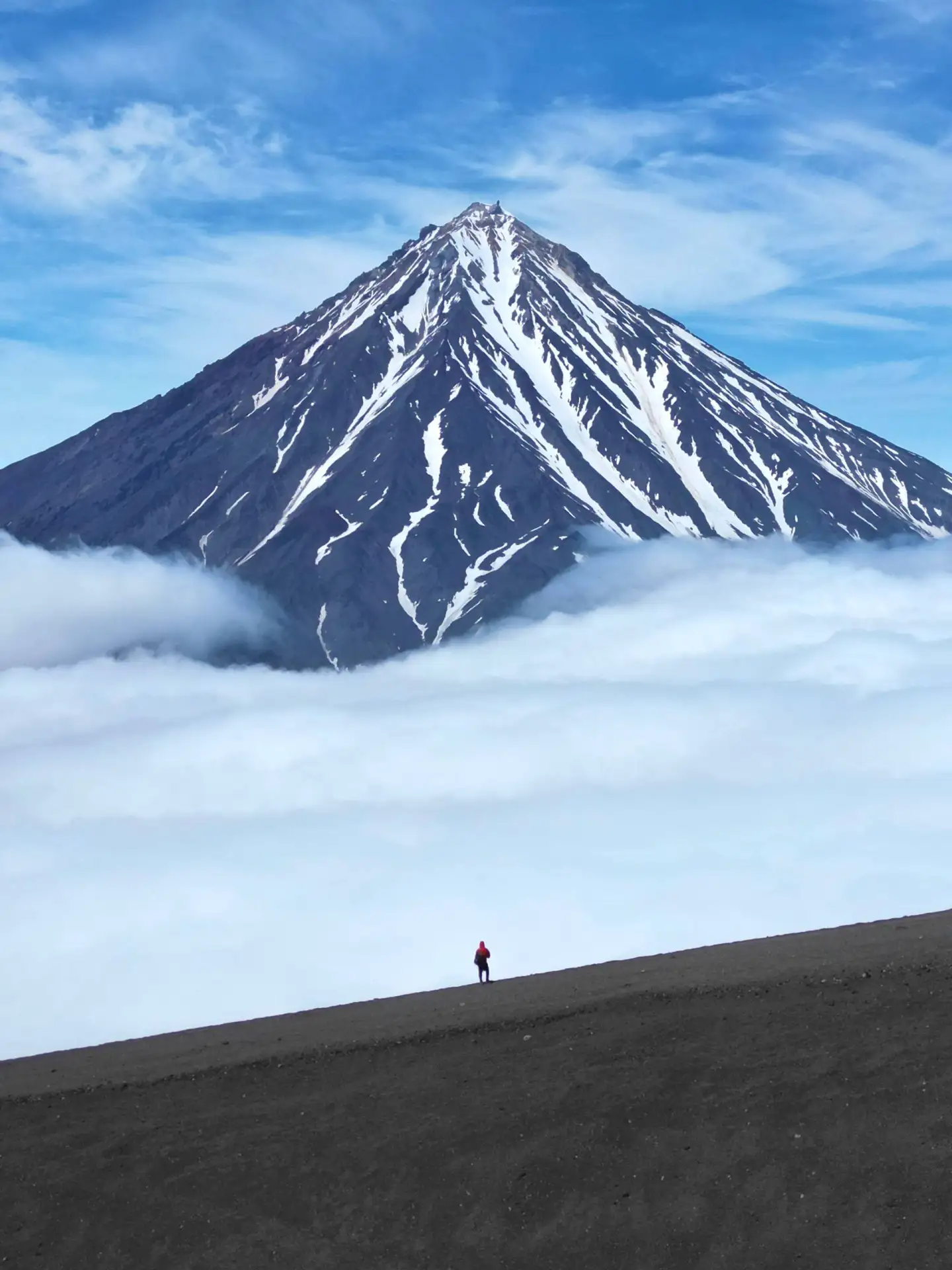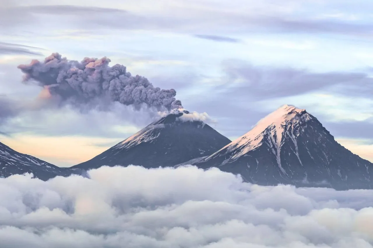 🌋 Ключевская сопка напомнила о своей силе: из кратера поднялся плотный шлейф пепла, медленно уходящий в небо...