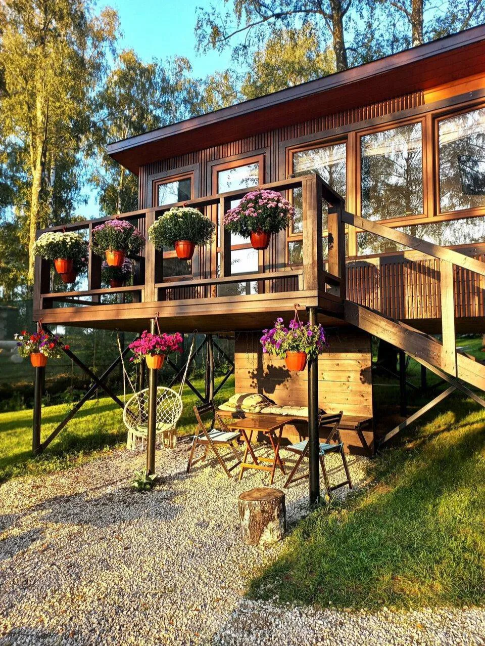 Помимо разнообразных коттеджей, есть уютный домик Карлсона на дереве.