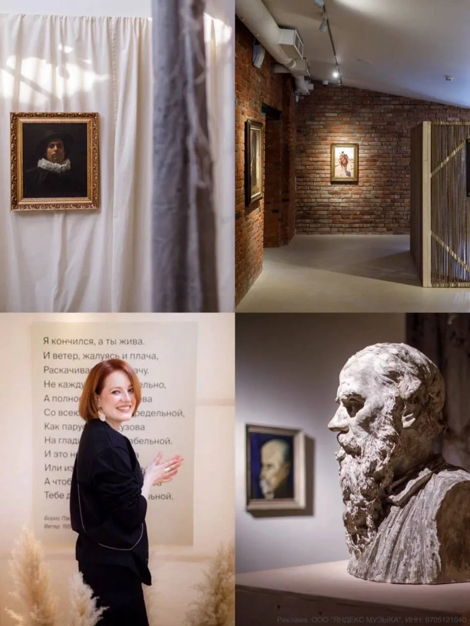 Вместо обычных подписей к картинам на стенах стихотворные строки Хармса, Пастернака и Цветаевой.