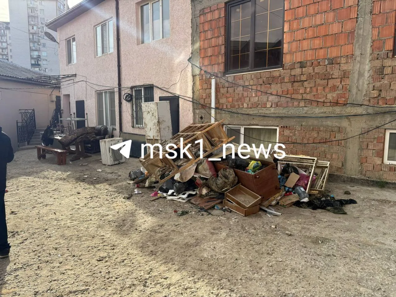 Пострадали и частные дома, некоторые из них уже не восстановить. По городу разбросаны мебель, матрасы, одежда, которые выносит потоком воды.
