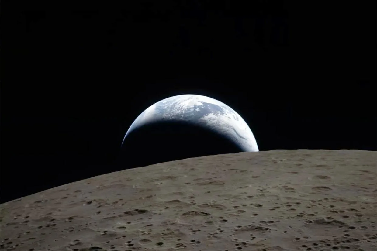 Слева фото от американской лунной миссии Artemis II. Оно повторяет легендарное фото «Восход земли», сделанное в 1968 году во время полёта «Аполлон-8».