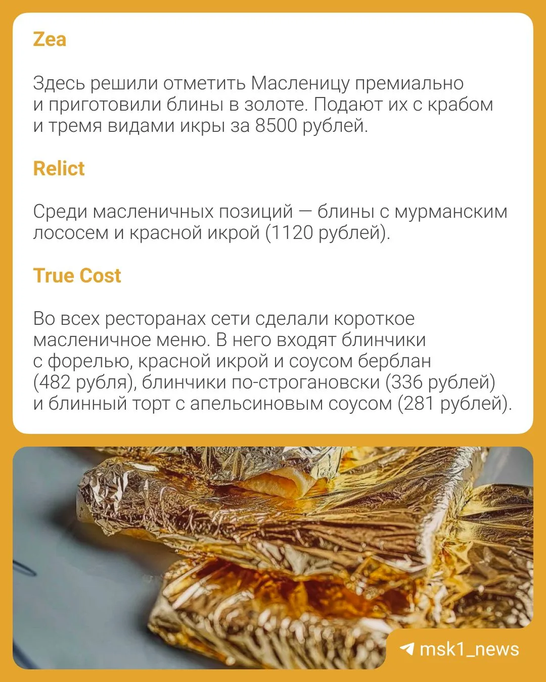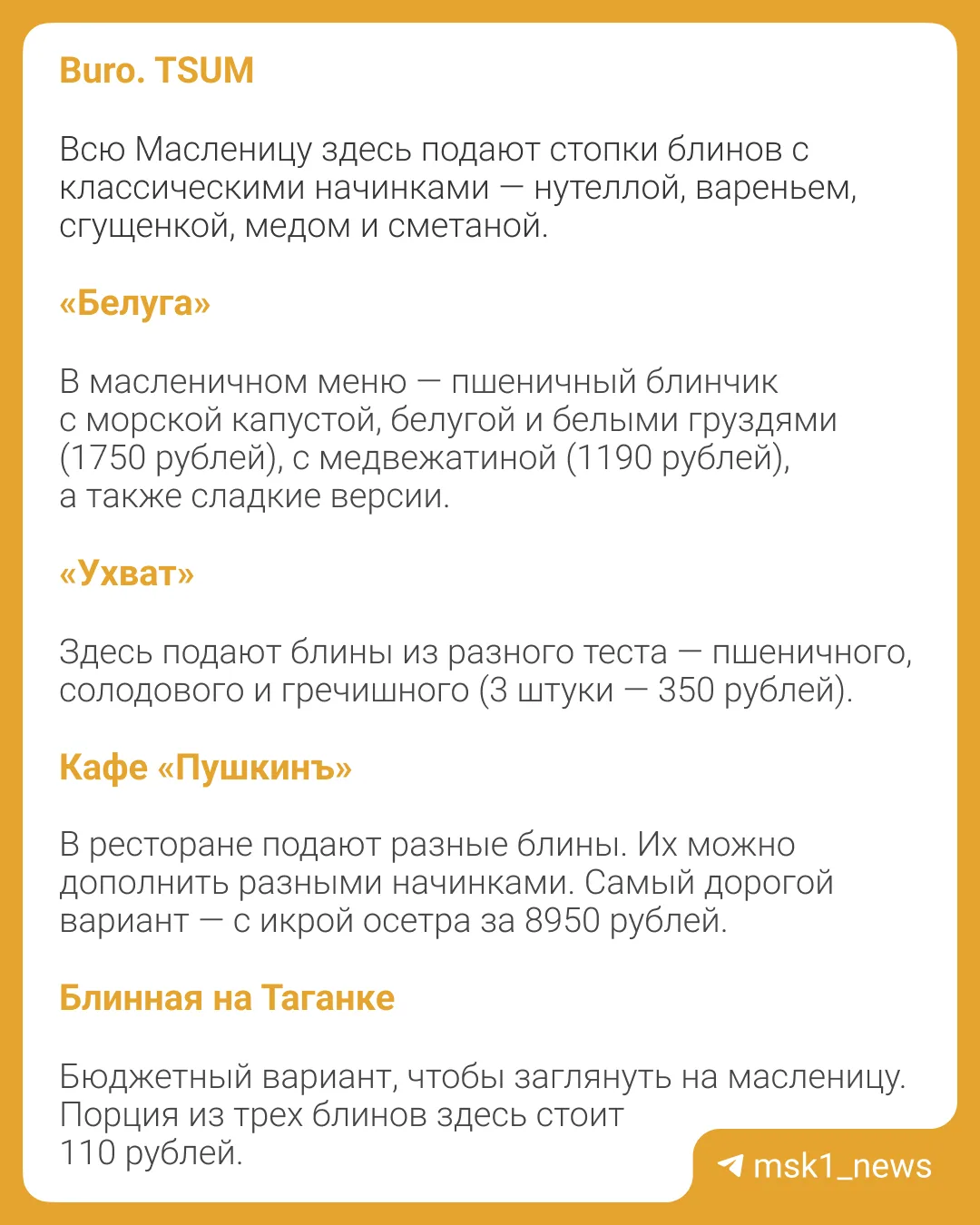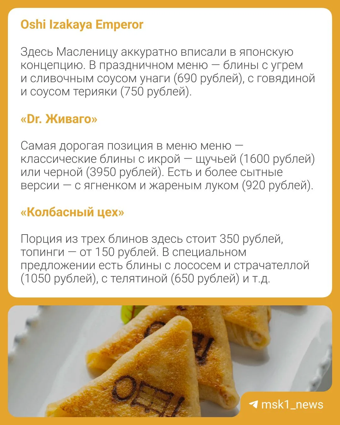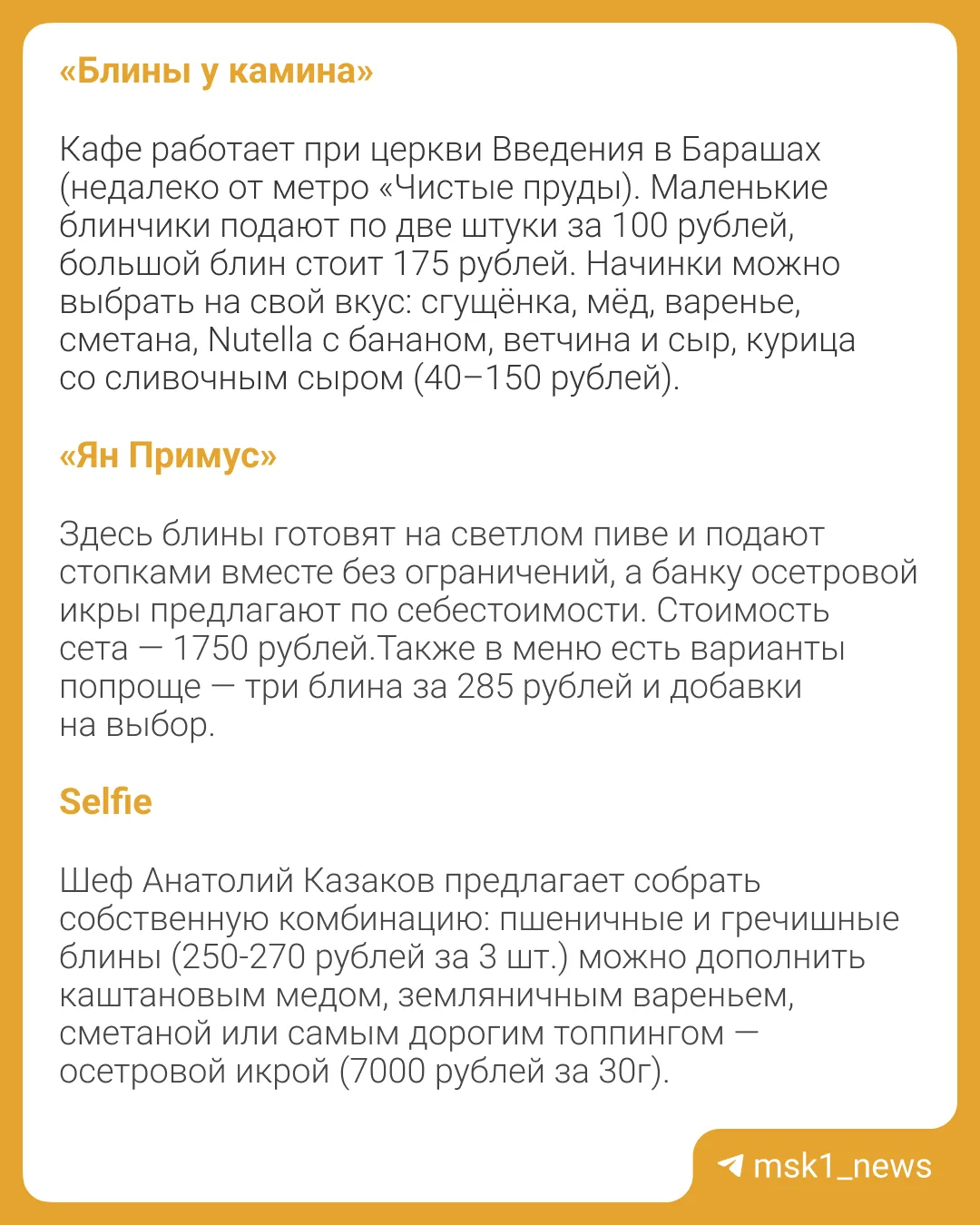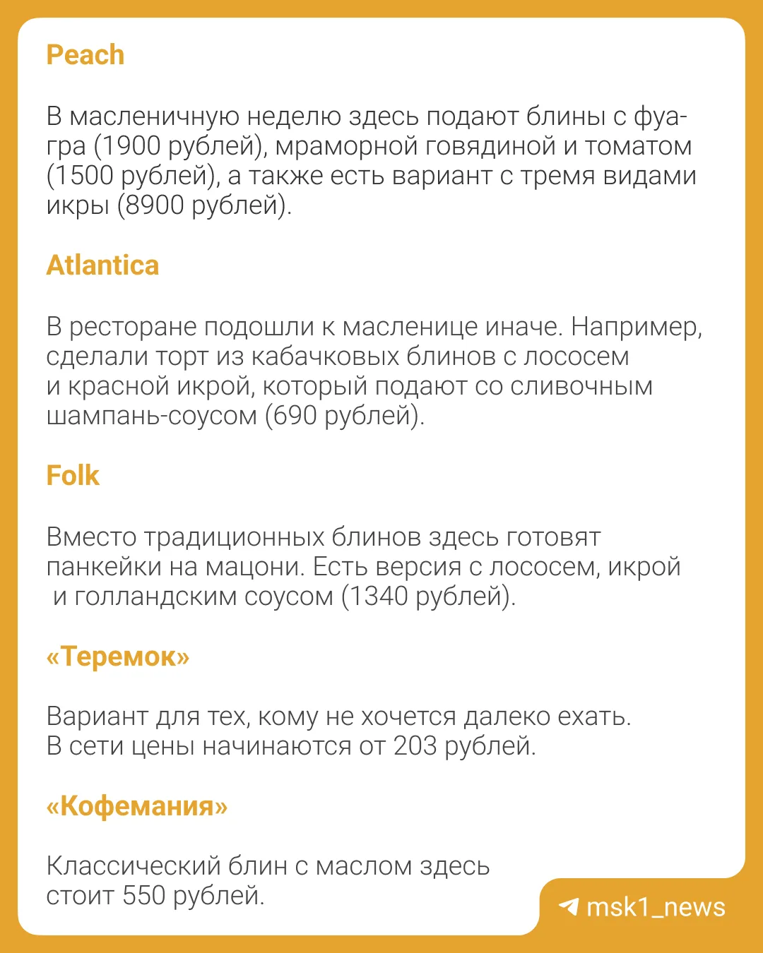 🥞Масленица — тот редкий случай, когда блины появляются в меню буквально повсюду: от сетевых кафе до ресторанов высокой кухни.