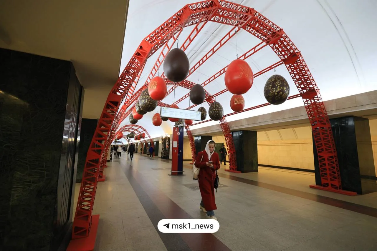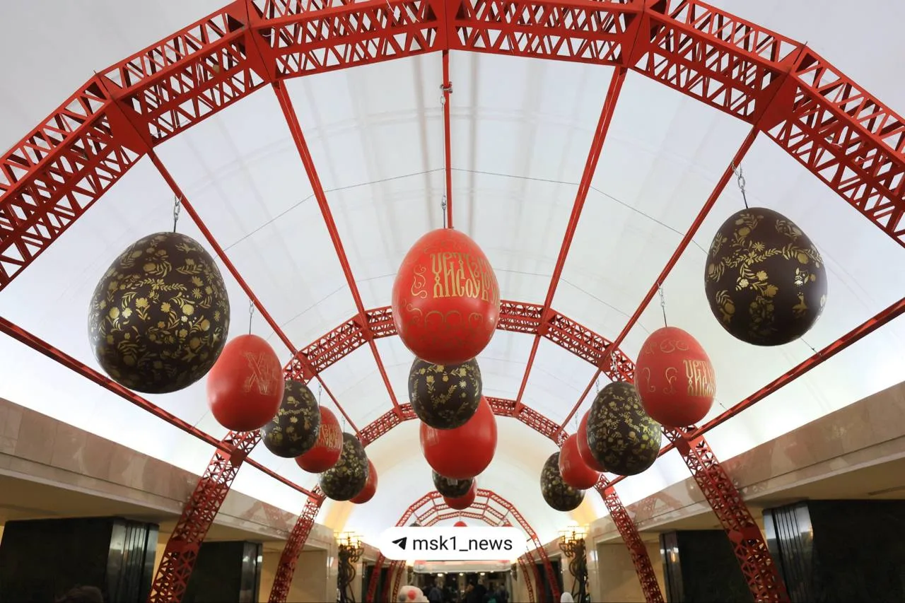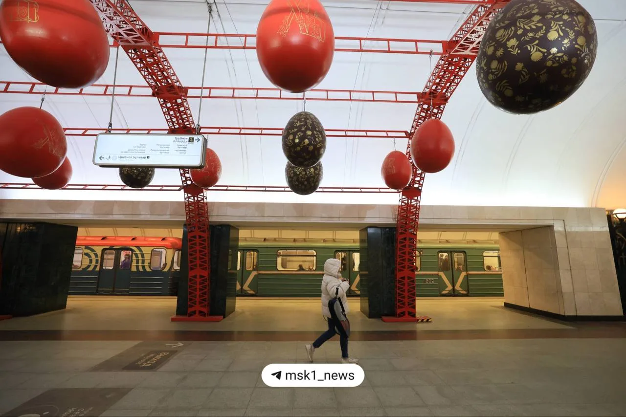 🥚 «Трубную» украсили к Пасхе — теперь на станции висят больше ста расписных яиц.