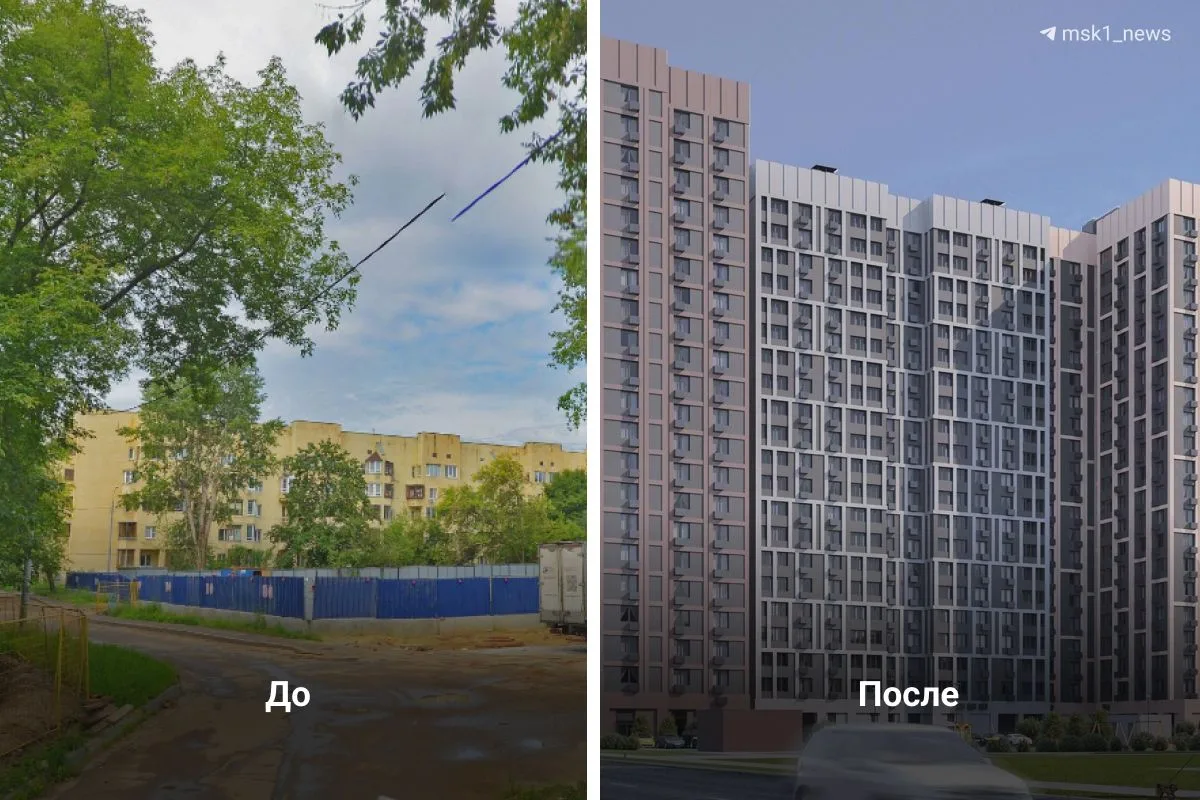 📍Над пятиэтажками возвысится разноцветный дом. Его построят на улице Плющева в Перово по программе реновации.