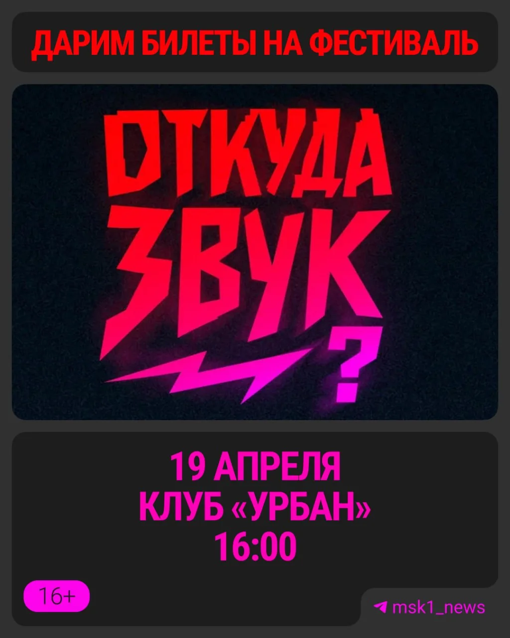 Дарим билеты на фестиваль «Откуда звук» 😍
