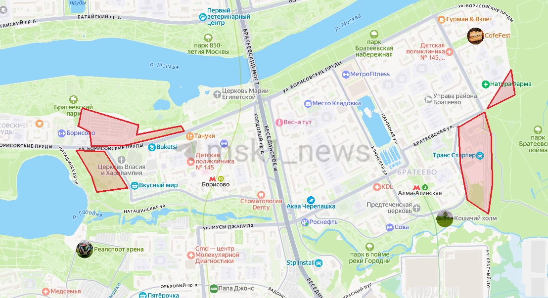 Под ковш пойдёт гаражный кооператив на Братеевской улице, улице Борисовские пруды и пустырь через дорогу. Там, кстати, помимо домов появится подстанция скорой помощи на 30 постов и многофункциональный акватермальный комплекс с крытой ледовой ареной.