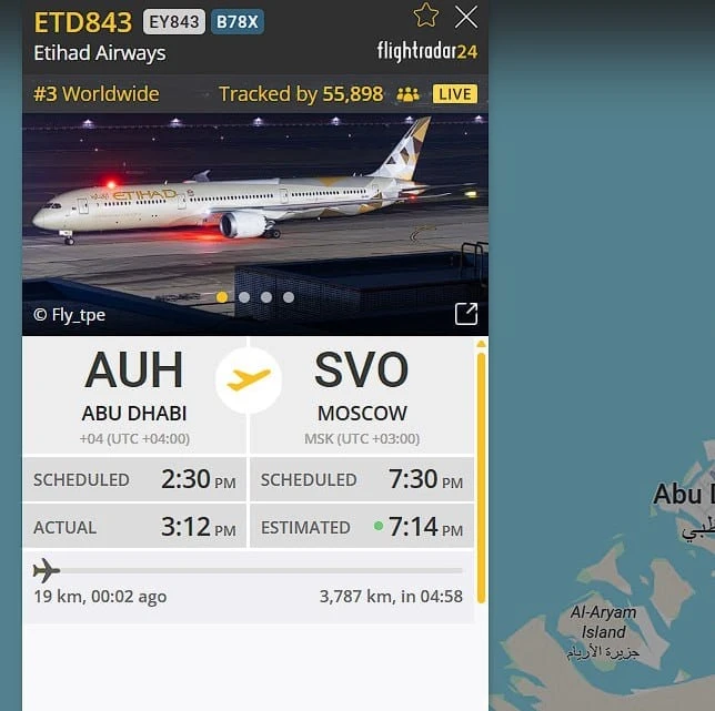 ⚡️Рейс из Абу-Даби сел в Шереметьево — первый из ОАЭ за последние трое суток