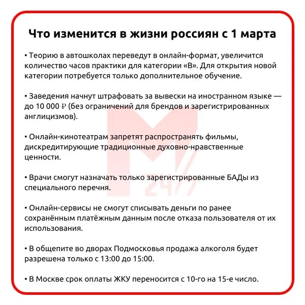 ❗️Изменения, которые вступают в силу в России с 1 марта