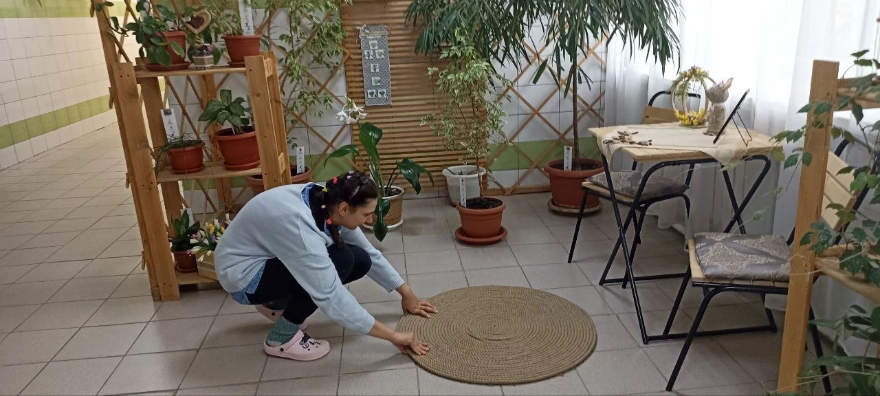 Рамина и Полина стали настоящими хозяйками зелёного уголка. Они заботливо поливают растения и наводят там идеальную чистоту.