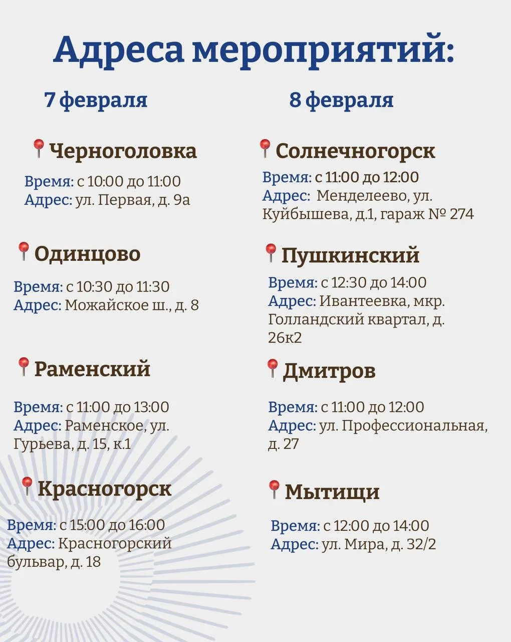 15:00 — пос. Рязановский, ул. Ленина, д. 2А