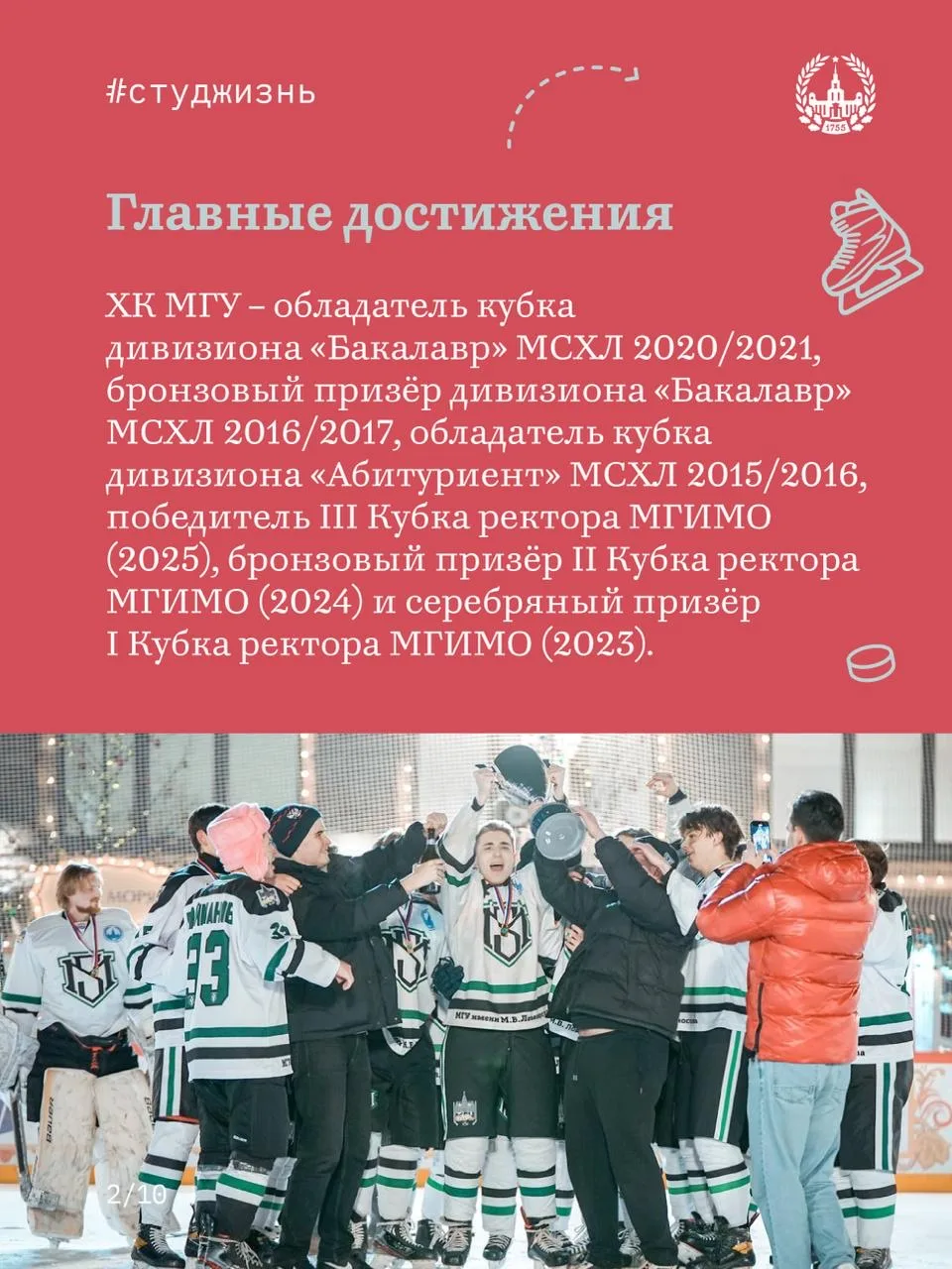 ХК МГУ – команда с богатой историей, которая прошла путь от любительского коллектива до обладателя кубков студенческих лиг. Рассказываем о главных достижениях, составе, тренировках и о том, как стать частью легендарной университетской команды.