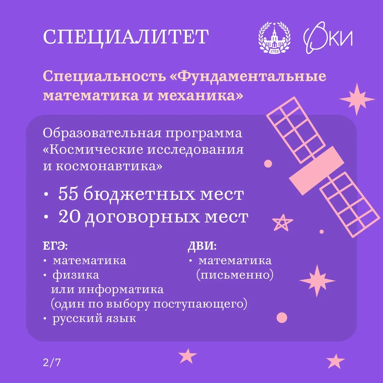Мечтаете исследовать космос и участвовать в реальных космических экспериментах? Тогда вам точно на факультет космических исследований МГУ! Тут готовят специалистов, способных проводить исследования космоса, ставить космические эксперименты и применять их результаты для решения фундаментальных и прикладных задач.