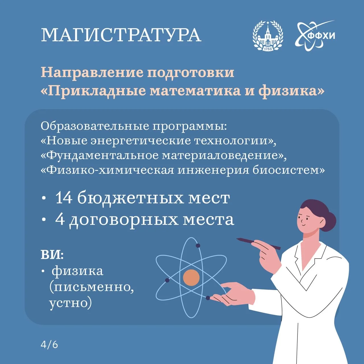 Обучение на факультете фундаментальной физико-химической инженерии призвано усилить технологическую составляющую классического естественно-научного образования, нацелено на реализацию инновационной междисциплинарной подготовки специалистов в области физики, химии и биологии.