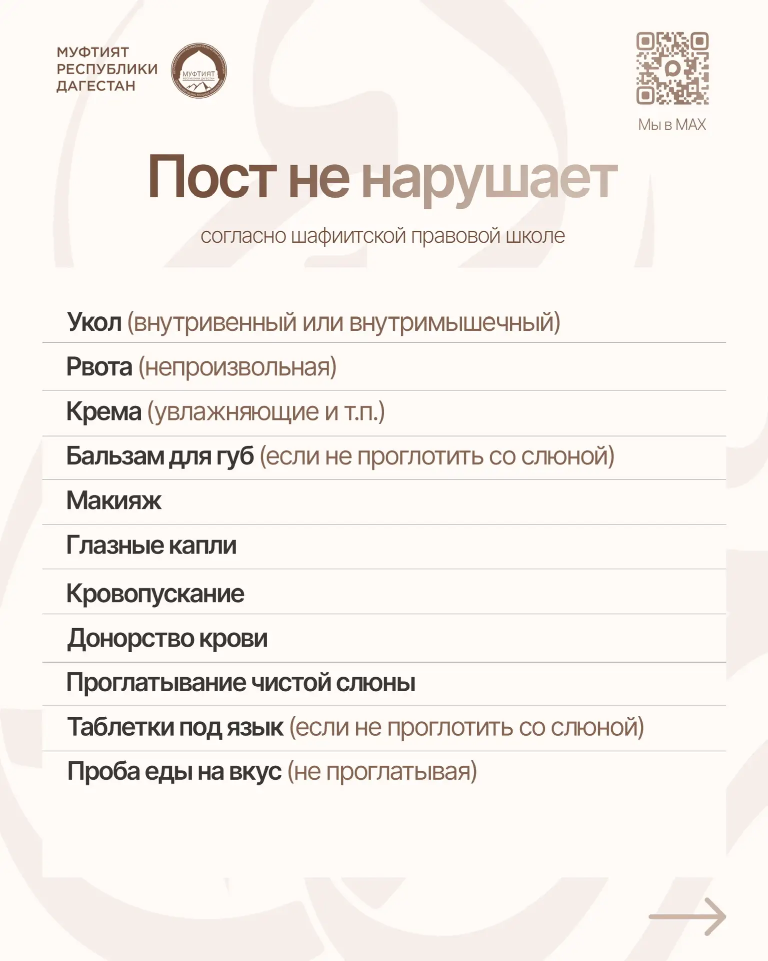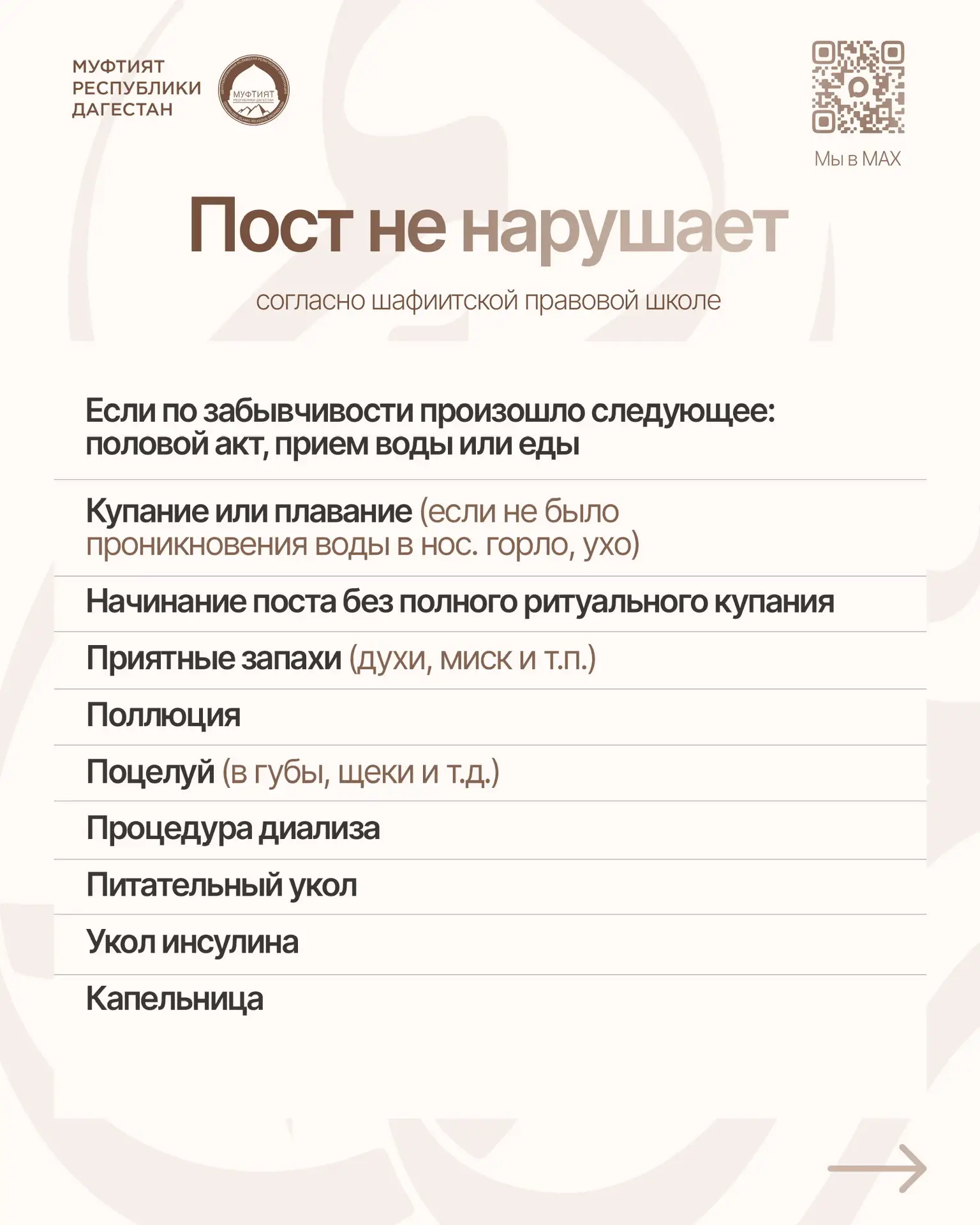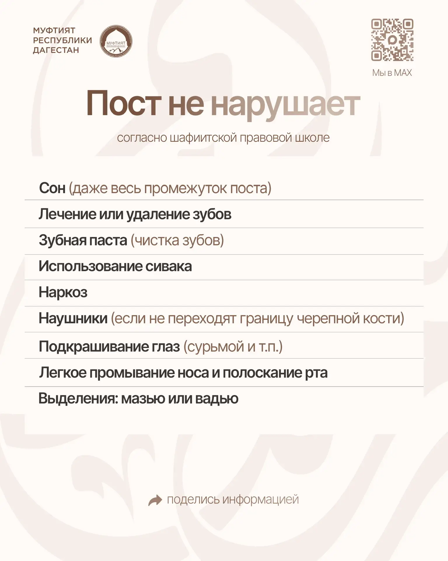 Краткие ответы на вопросы «Что нарушает и не нарушает пост» (согласно шафиитской правовой школе)