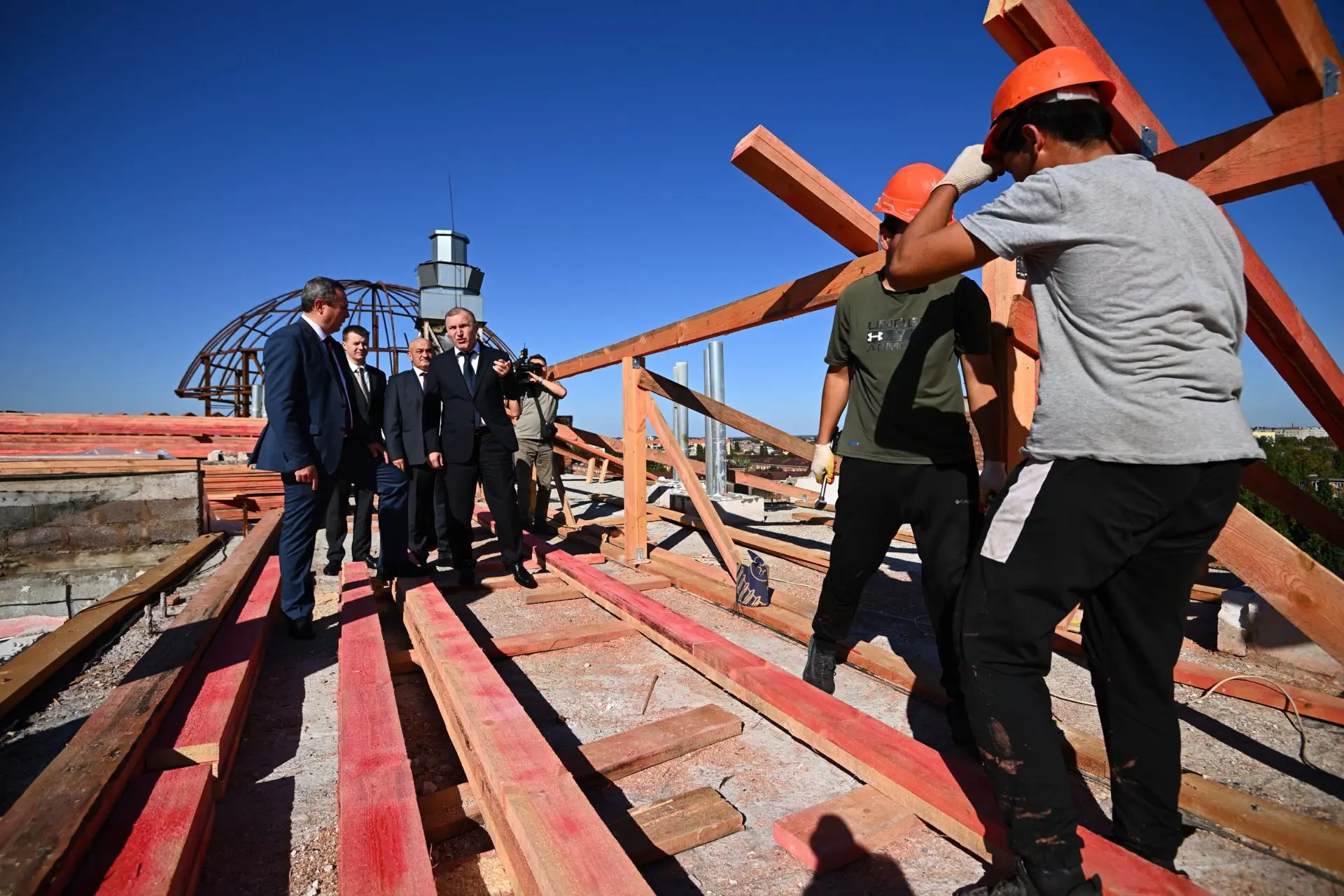 Минстрой республики и столичная мэрия в ежедневном режиме координируют ход восстановления кровельной конструкции. Потребовал от подрядчиков ускорить работы, чтобы непогода не усугубила ущерб.