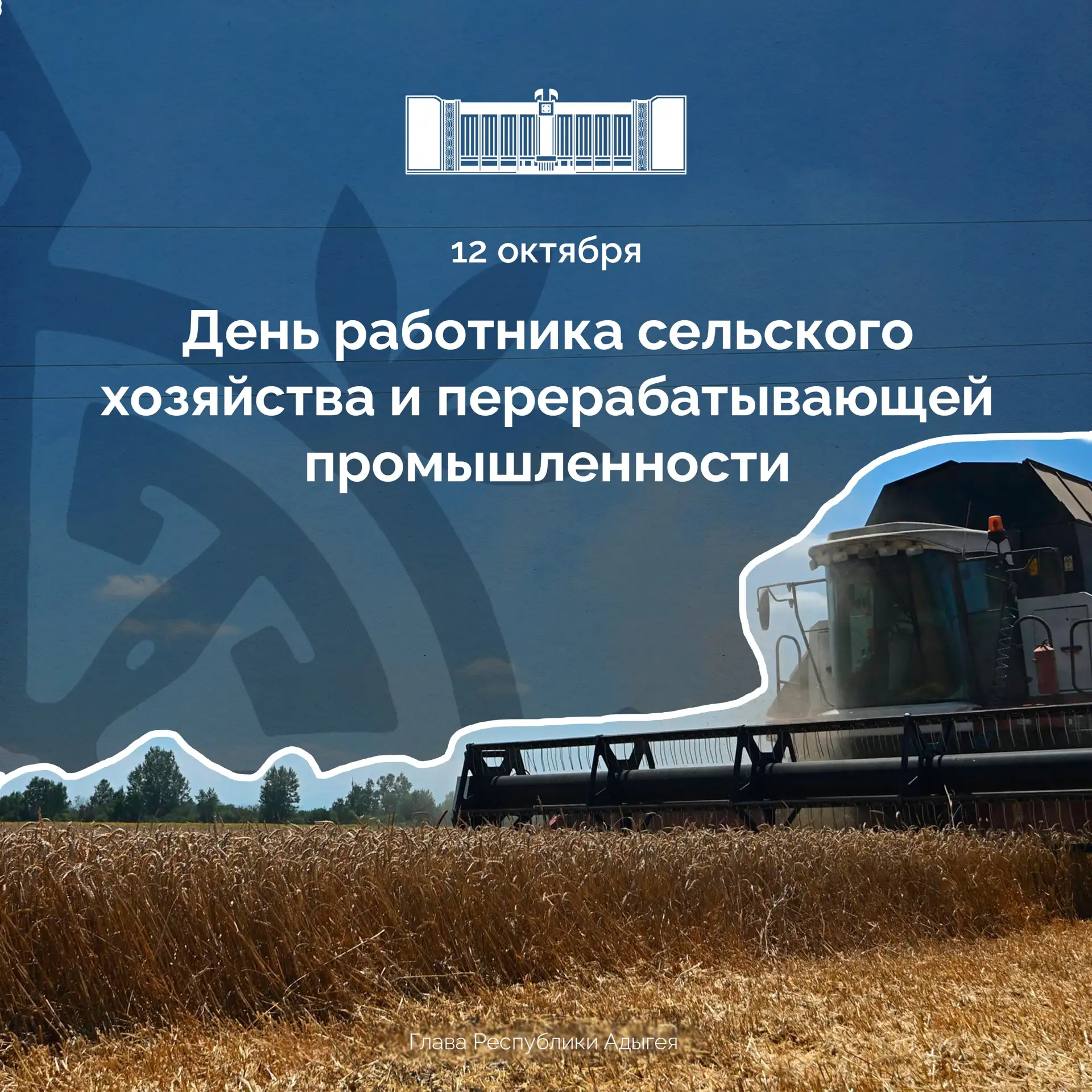 Уважаемые труженики и ветераны агропромышленного комплекса Адыгеи, примите слова глубокой признательности за ваш добросовестный труд, любовь к земле и профессиональное мастерство! Искренне желаю вам крепкого здоровья, успехов в делах и начинаниях, максимально возможных урожаев, счастья и взаимопонимания в семьях, всего самого доброго!